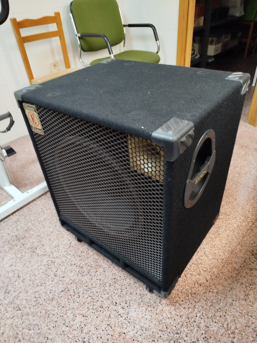 Incluye ruedas, muy cómodo para transportar. El sonido es potente y nítido con graves profundos. Lo vendo porque llevo años sin usarlo.