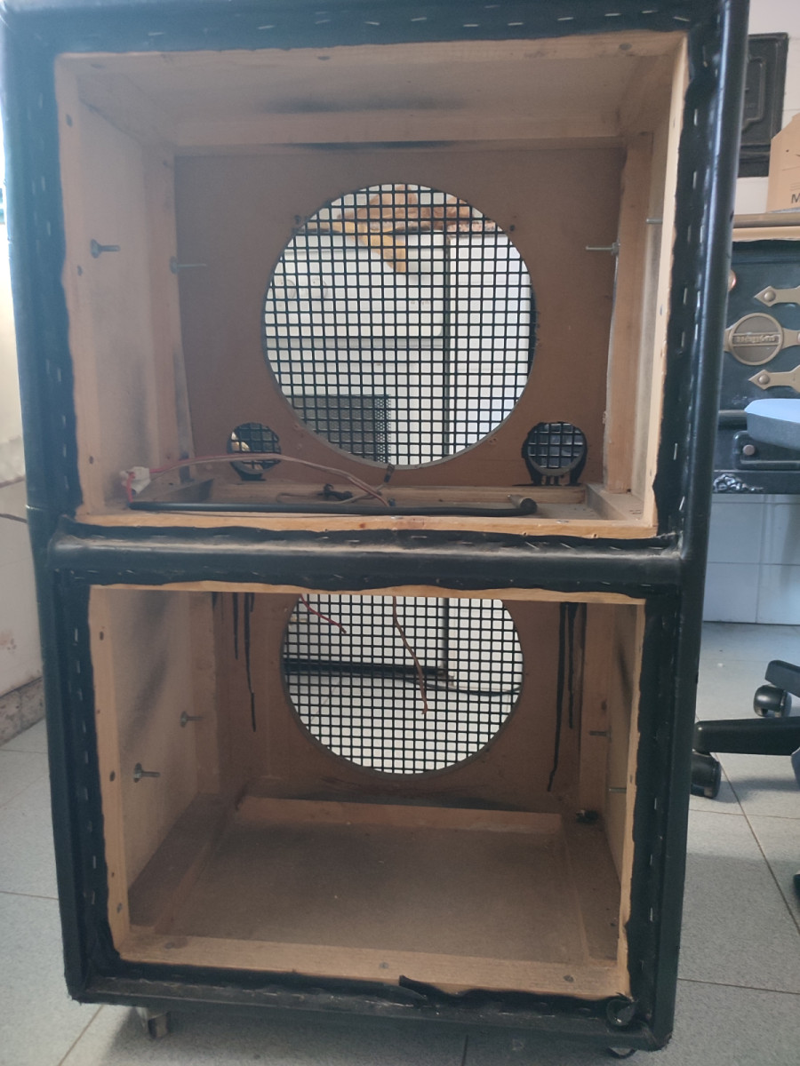 vendo esta pantalla echa a mano con contrachapado, es para bajo pero se puede usar perfectamente para guitarra, numerosos roces exteriores de ahí el precio pero ningún daño destacable, lleva tapas por detrás para cada módulo, por ese precio obviamente no incluyo envío