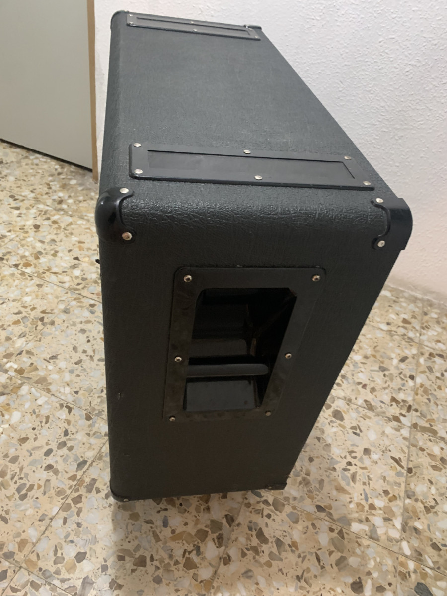 Pantalla de finales de los 90, yo la compré de segunda mano y no puedo especificar el año, su antiguo dueño al poco de cómprala le cambió los altavoces y les puso los Marshall G12 Vintage by Celestion, que si no he mirado mal son del año 1999, estos altavoces vienen a ser la versión que hace Celestion de los Vintage 30 para Marshall, para mi gusto y por lo que he podido comparar los Marshall suenan mucho mejor, ya sea que son ingleses, que están rodados o que no son exactamente iguales, no sé.