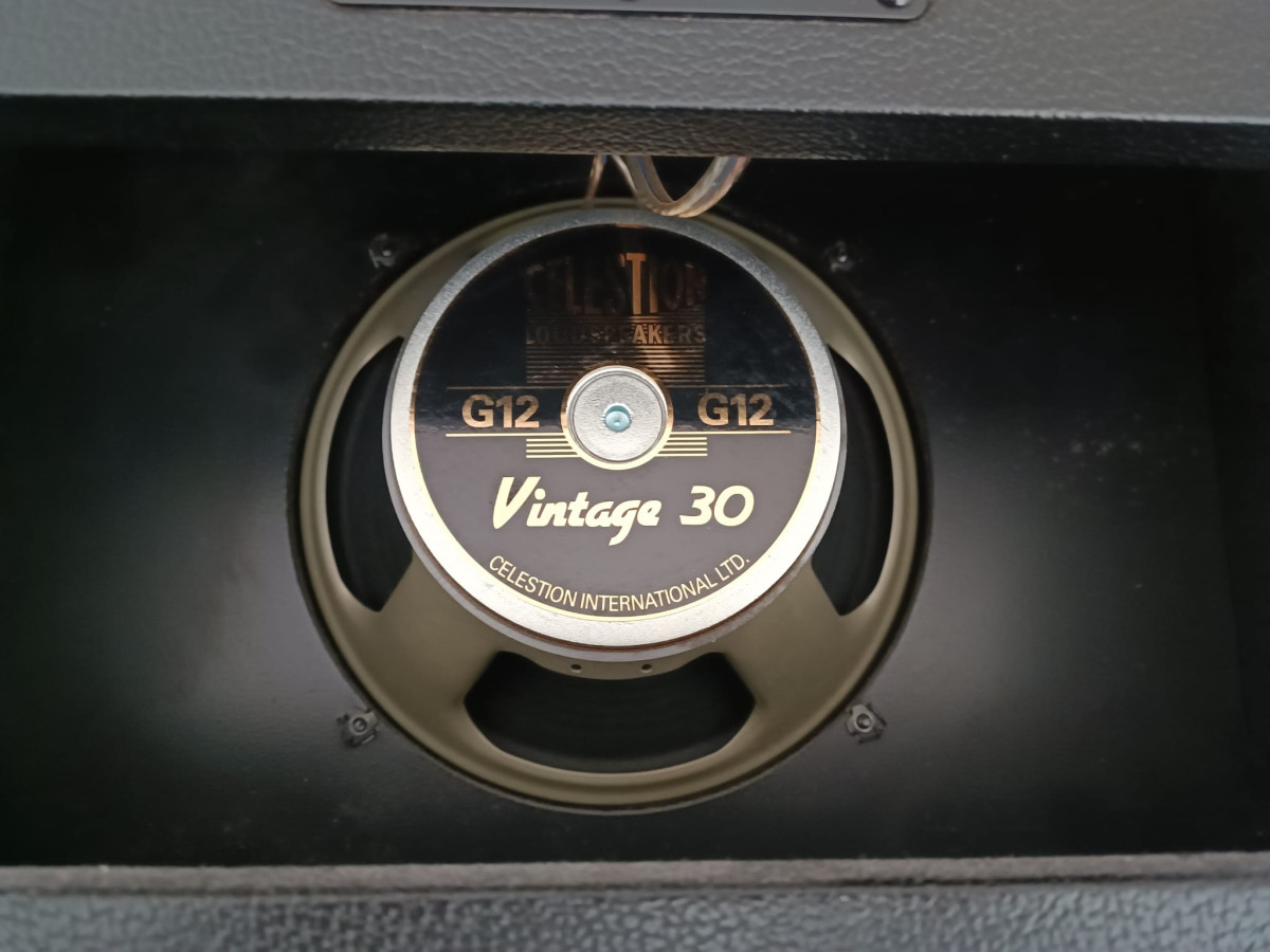 Estupenda pantalla 1x12 Palmet con impedancia 8-16 Ohm, monta un G12 Celestion Vintage 30 que suena potente y rockero. No ha salido de casa.