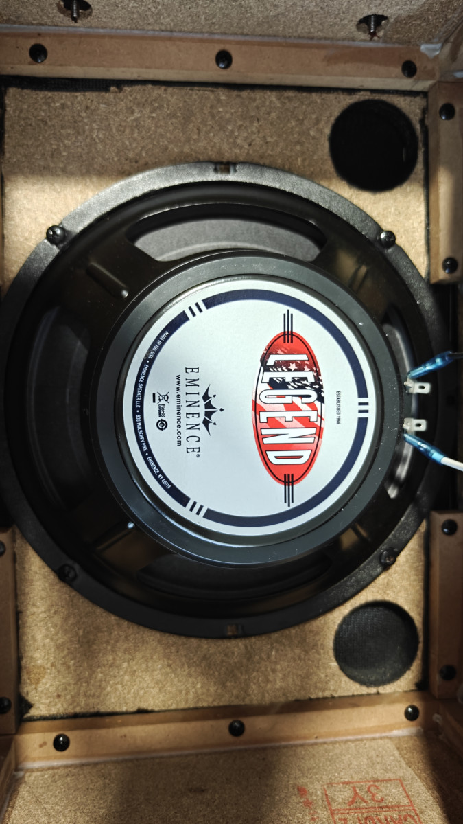Le cambié el altavoz por un Eminence Legend, de mucha mayor calidad y sensibilidad. 10' a 8 ohmios.