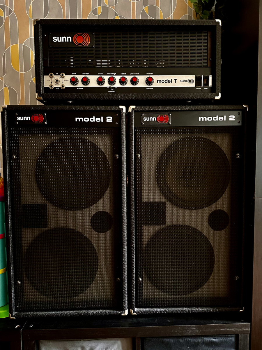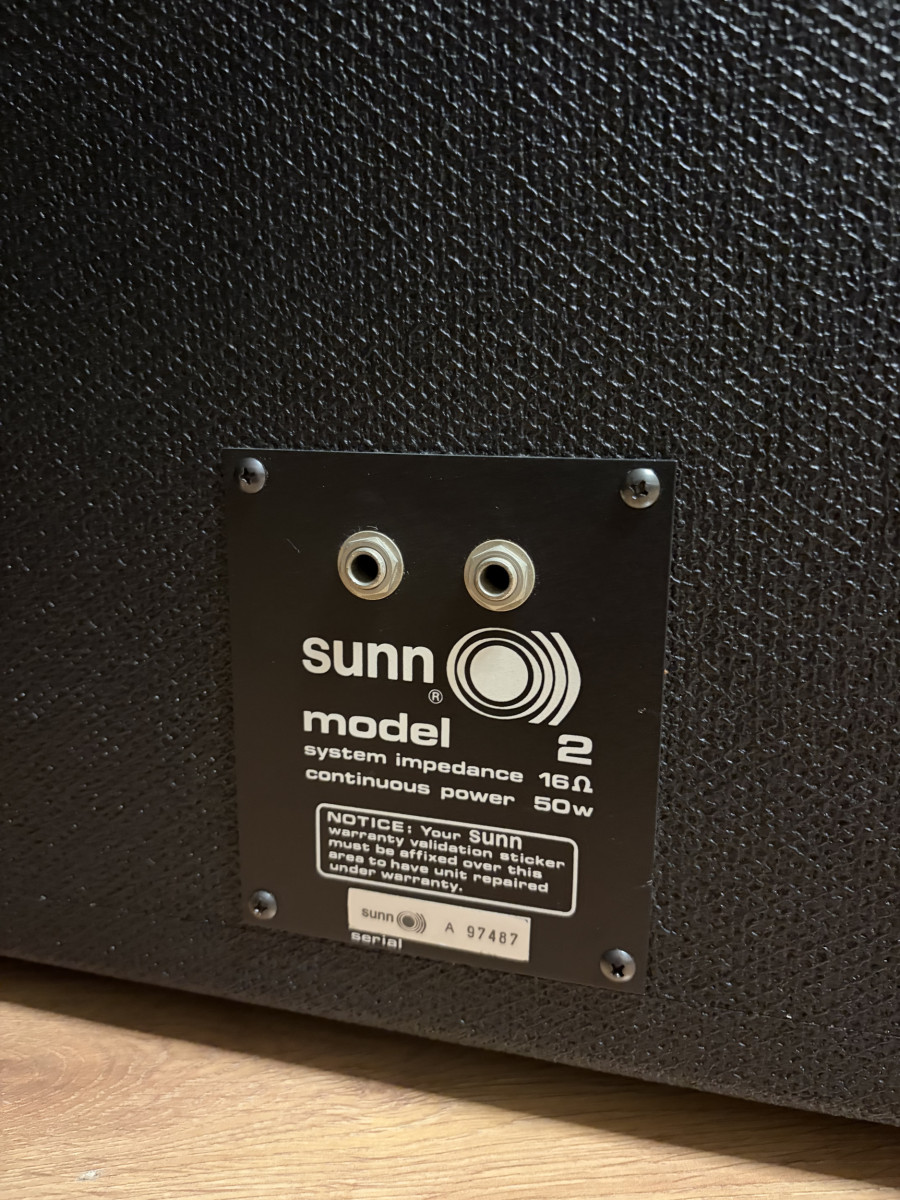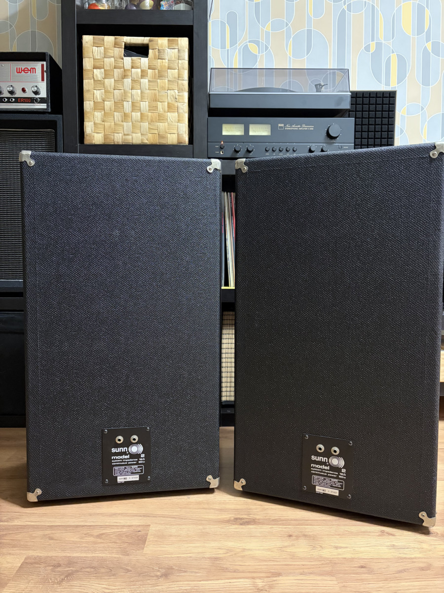 Vendo pareja pantallas Sunn Model 2. Sunn o))) 2x10”. Finales de los años 70, made in usa, cada pantalla lleva dos conos originales de la época Eminence Squareback de 10” y un tweeter Motorola. Todo original, apenas marcas de uso, muy bien conservadas. Suenan muy bien con guitarra, bajo, teclado, p.a. Ideal para pequeños bolos, estudios, o para decorar tu salón y tocar en tu casa con un cabezal a juego o escuchar música con un equipo vintage. Prefiero vender juntas, 250€ cada una. La pareja 400€. Se pueden ver y probar en Rivas-vaciamadrid (Madrid).