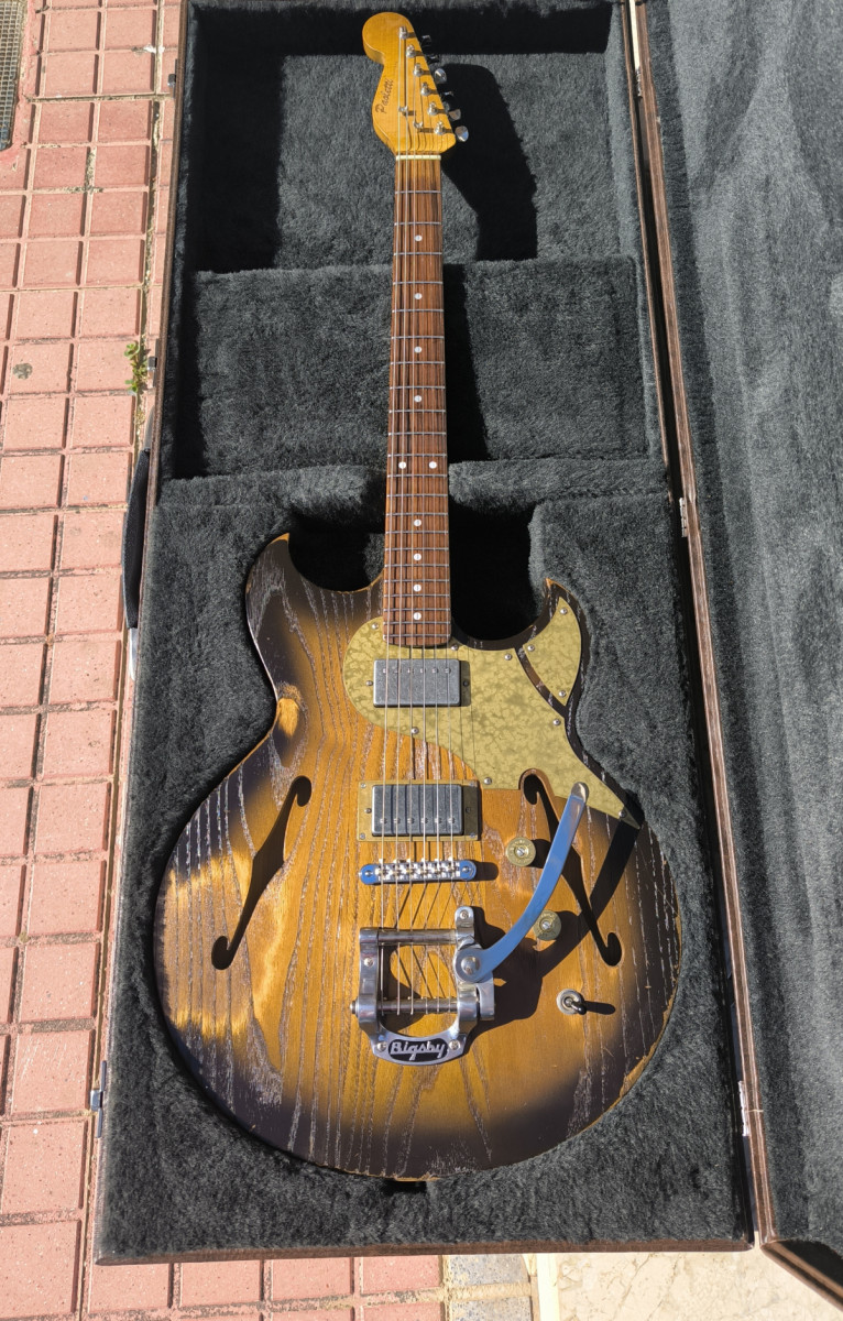 Es un cruce entre una 335, una telecaster y una gretsch, luce suena y se toca de maravilla, pero no es lo que busco.