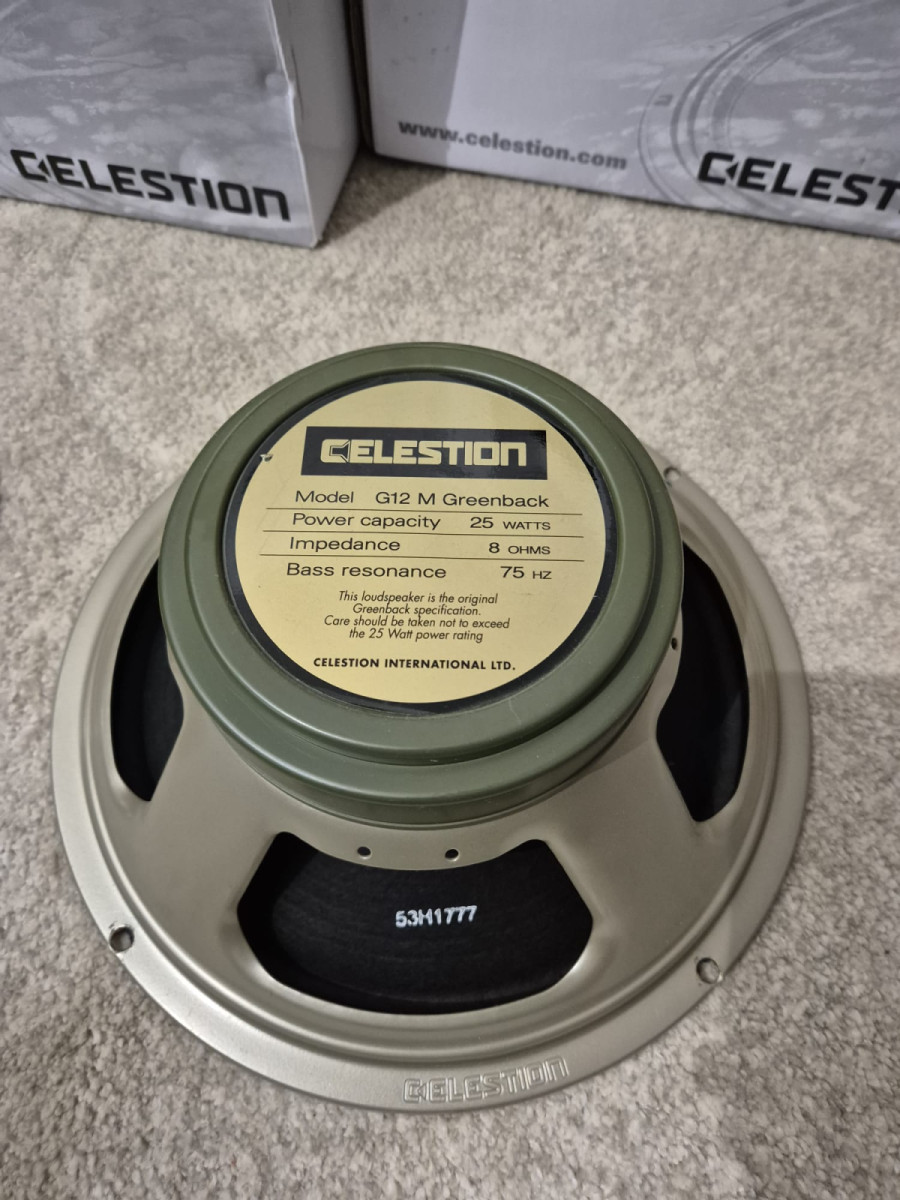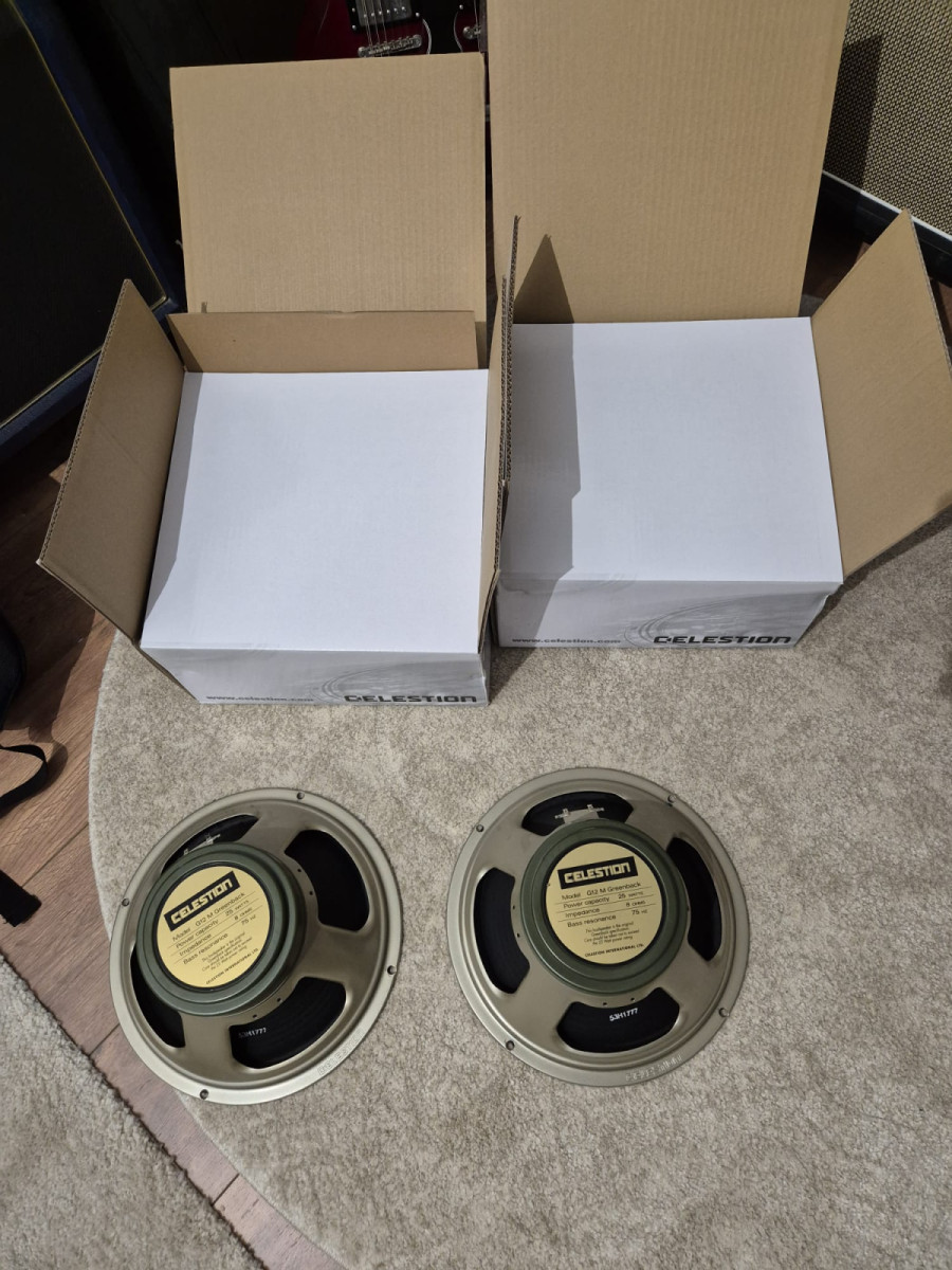 Vendo pareja de altavoces Celestion Greenback de 8 Ohm que estaban en un VOX AC30 HW. Apenas tienen uso.