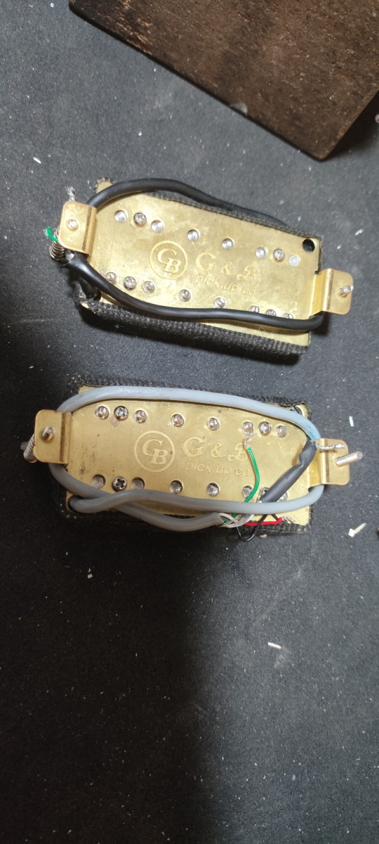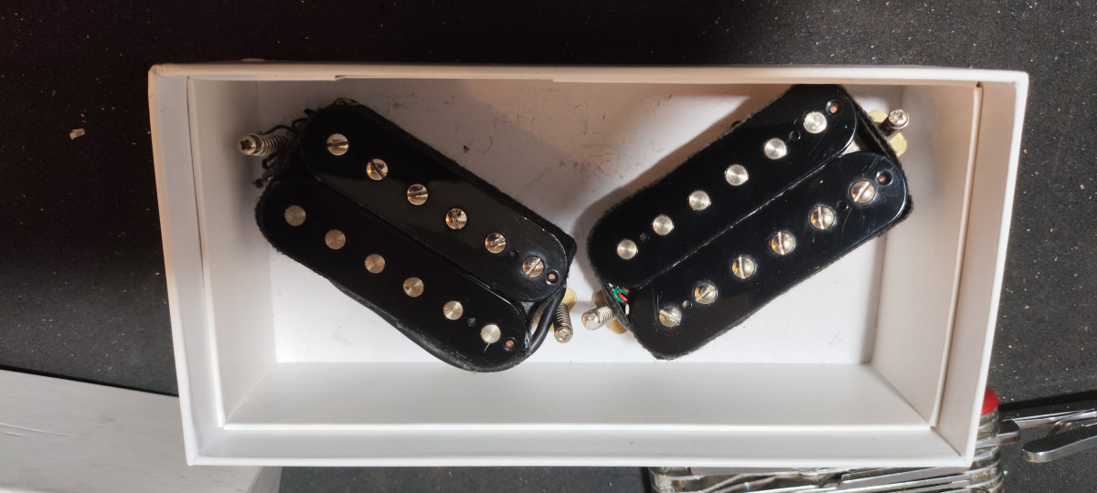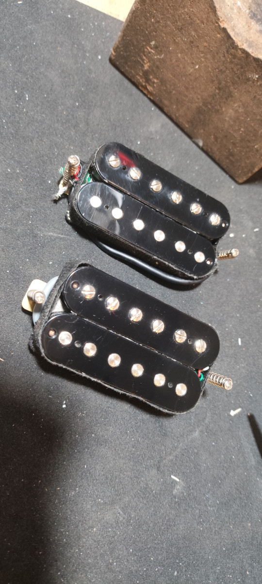 Pareja de pastillas mástil y puente PRS SE 85/15, modificadas, alnico 8 roughcast (De los que usan las Bare Knuckle) en puente y alnico V en mástil, se puede ver el cambio y la mejora de sonido en el siguiente video.