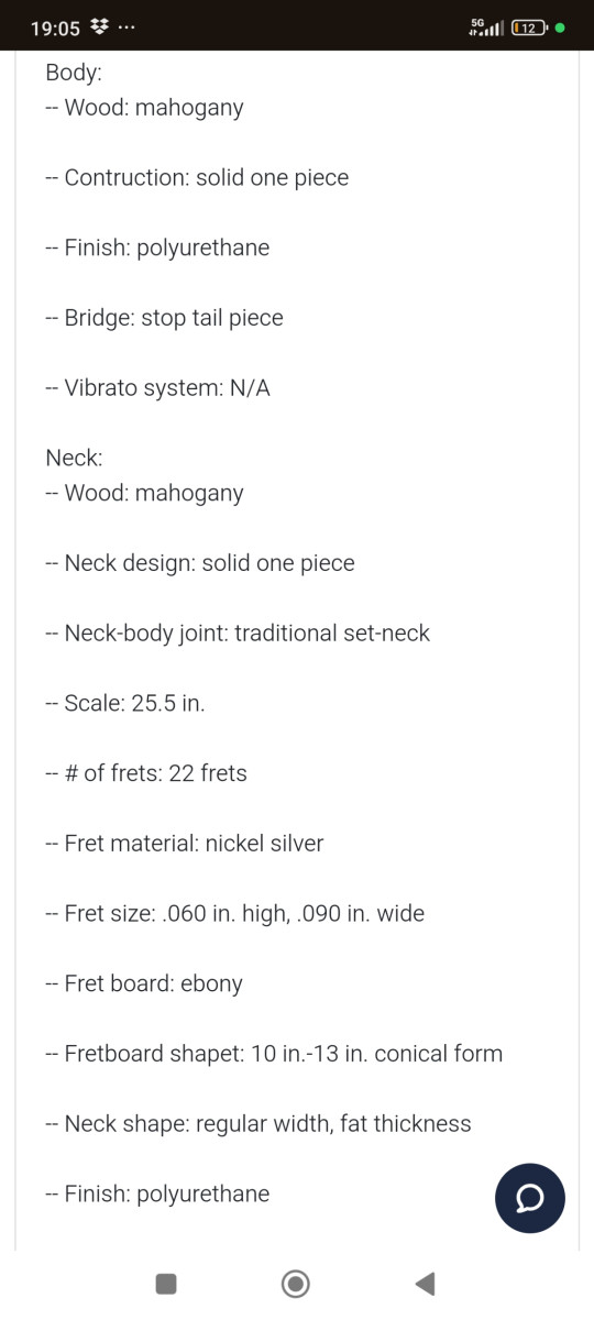 Cuerpo de caoba, diapasón de ébano (ver specs completas en fotos). Tiene marcas de uso que se detallan en las fotografías. Cuerdas nuevas Ernie Ball 009-042.
