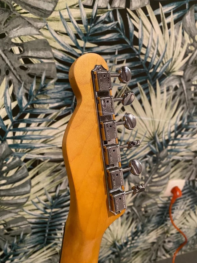 Monta set de pastillas de Alnico de Fender (del modelo Squier Classic Vibe '50s Telecaster). El clavijero es Wilkinson tipo Kluson vintage, mantiene la afinación perfectamente, y el puente clásico lleva 3 selletas compensadas Fender.