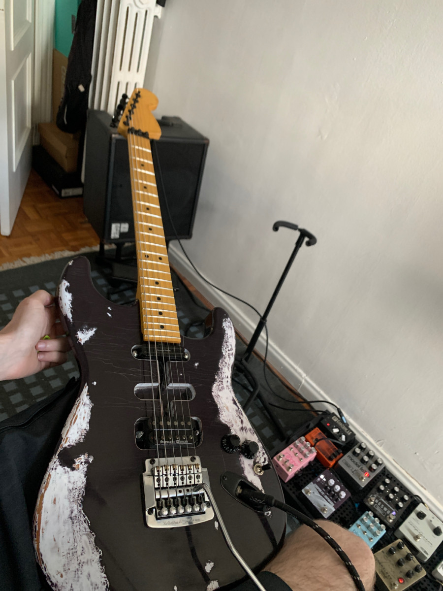 La guitarra es una delicia de superstrat, y como puedes ver, tiene todo tope de gama.