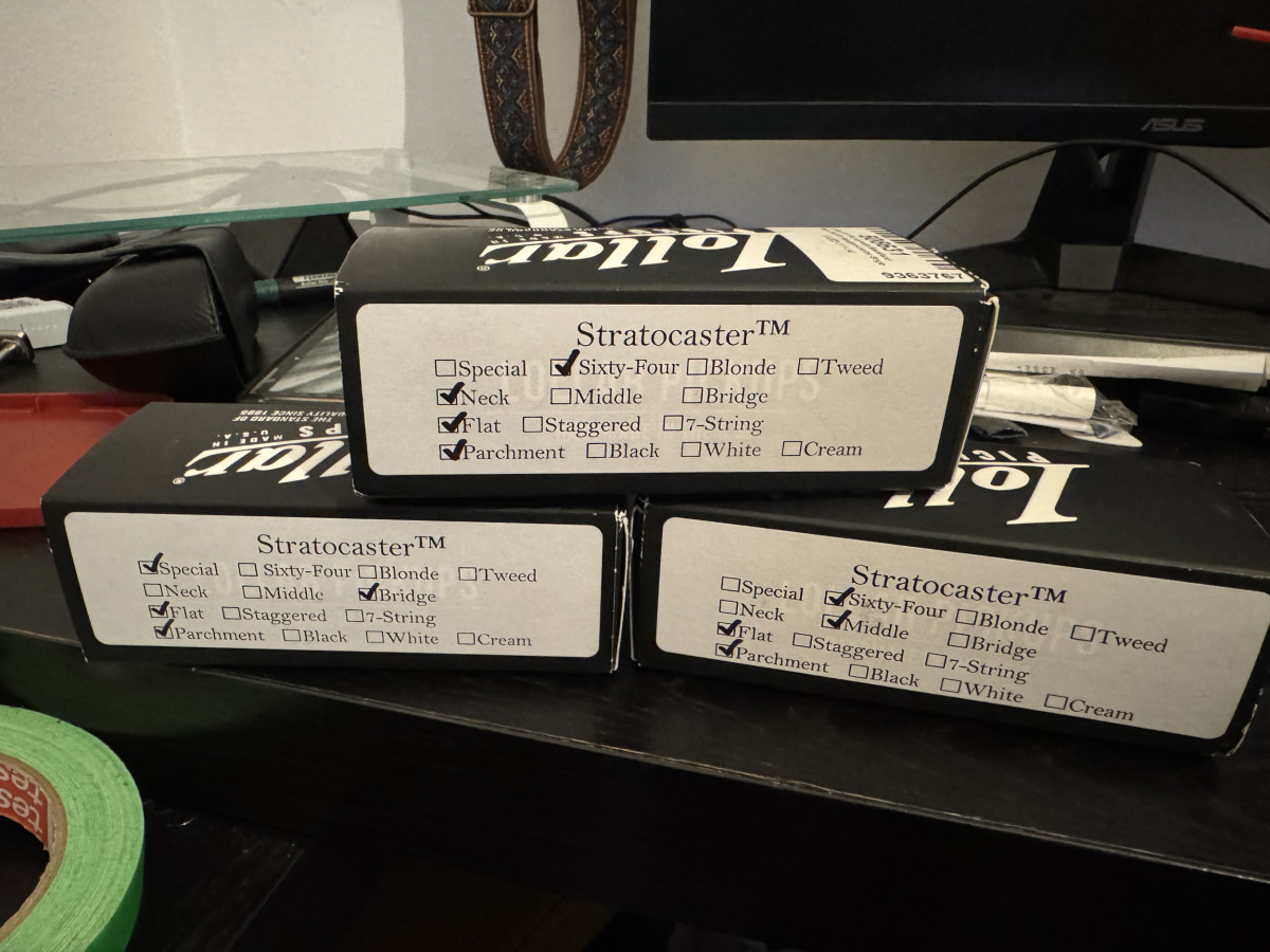 Conjunto de três captadores / Pickups Lollar para guitarra Stratocaster. Fabricados à mão nos EUA.