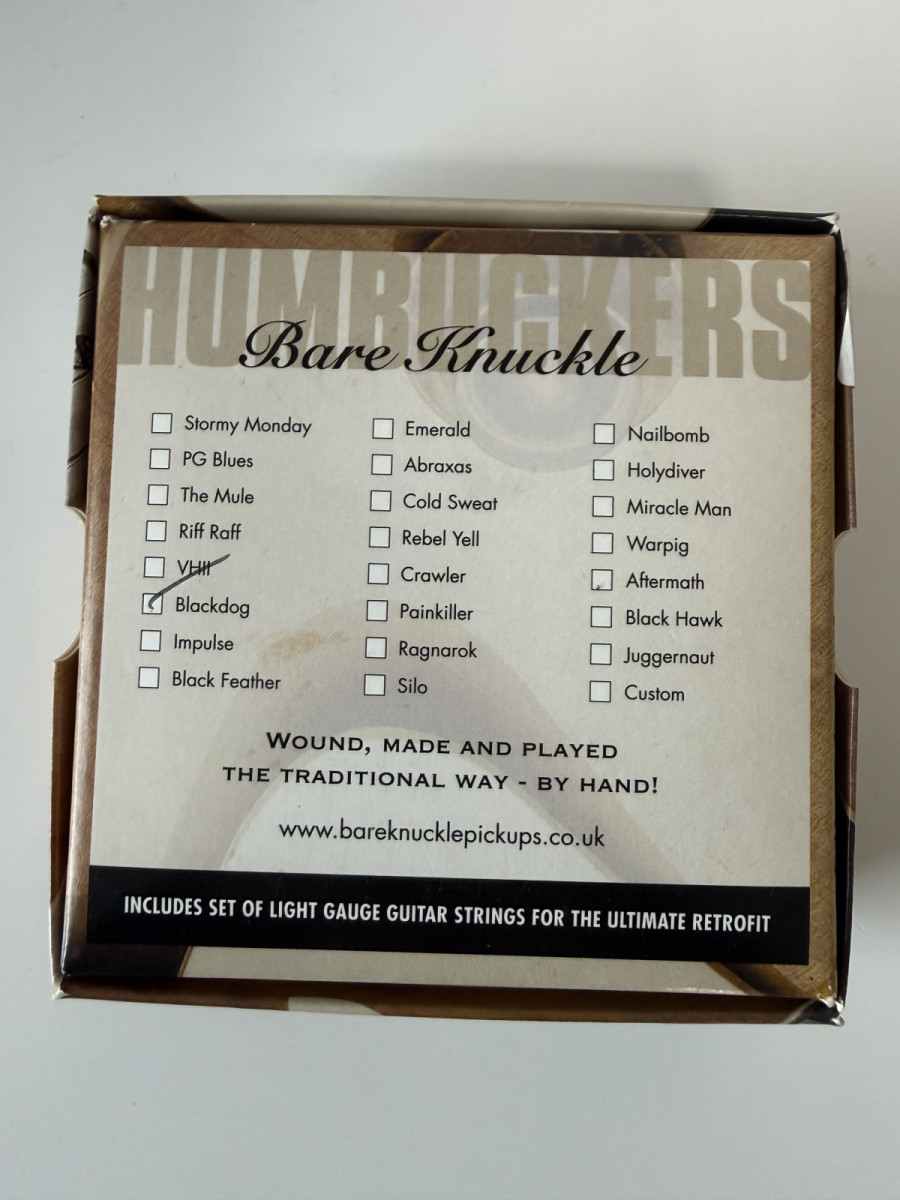 Vendo una pastilla Bare Knuckle Blackdog bridge a estrenar. Finalmente usé otra pastilla para la guitarra que estaba destinada y se ha quedado sin usar.