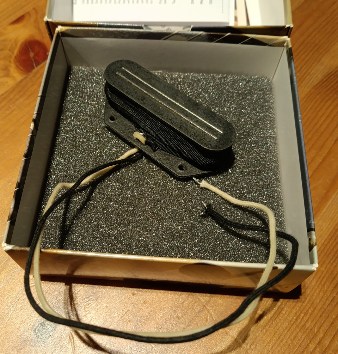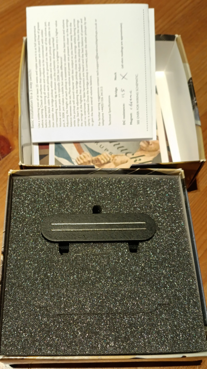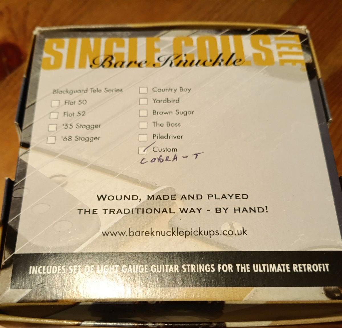 Se trata de una pastilla para Telecaster hecha por la marca Inglesa Bare Knucke. Es formato single, pero se acerca a una Humbucker ya que tiene 11,57ohms de salida. Cualquier duda ya sabéis...