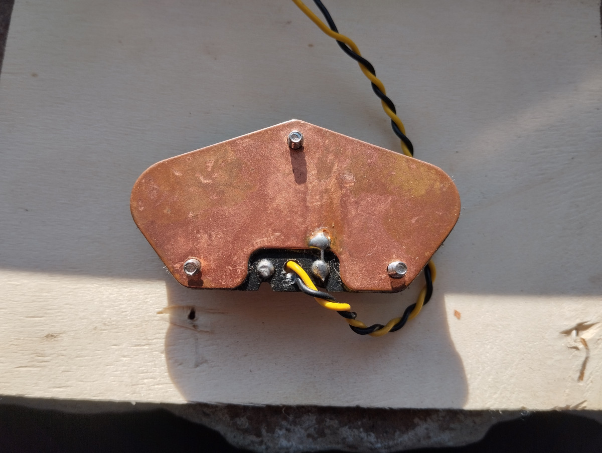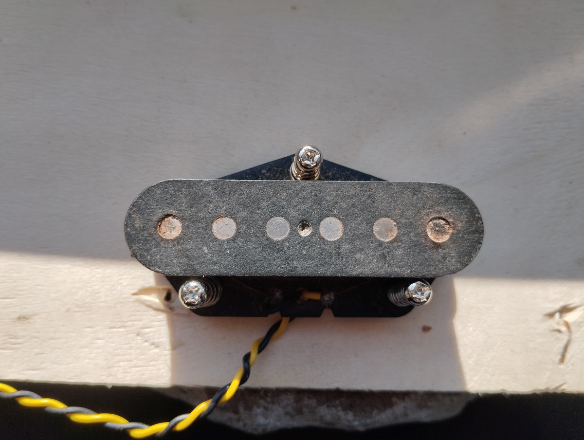 Vendo esta pastilla, es de una Fender telecaster japonesa. Suena correctamente pero no da lectura en el multímetro, tiene algo de óxido en algún polo y si tocas con mucha ganancia se nota algo microfónica. Pero el sonido es muy bueno. Diría que no es imprescindible repararla.