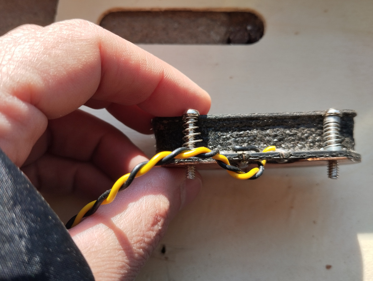 Va con tornillos y muelles y longitud de cable suficiente. La vendo para poner una humbucker.