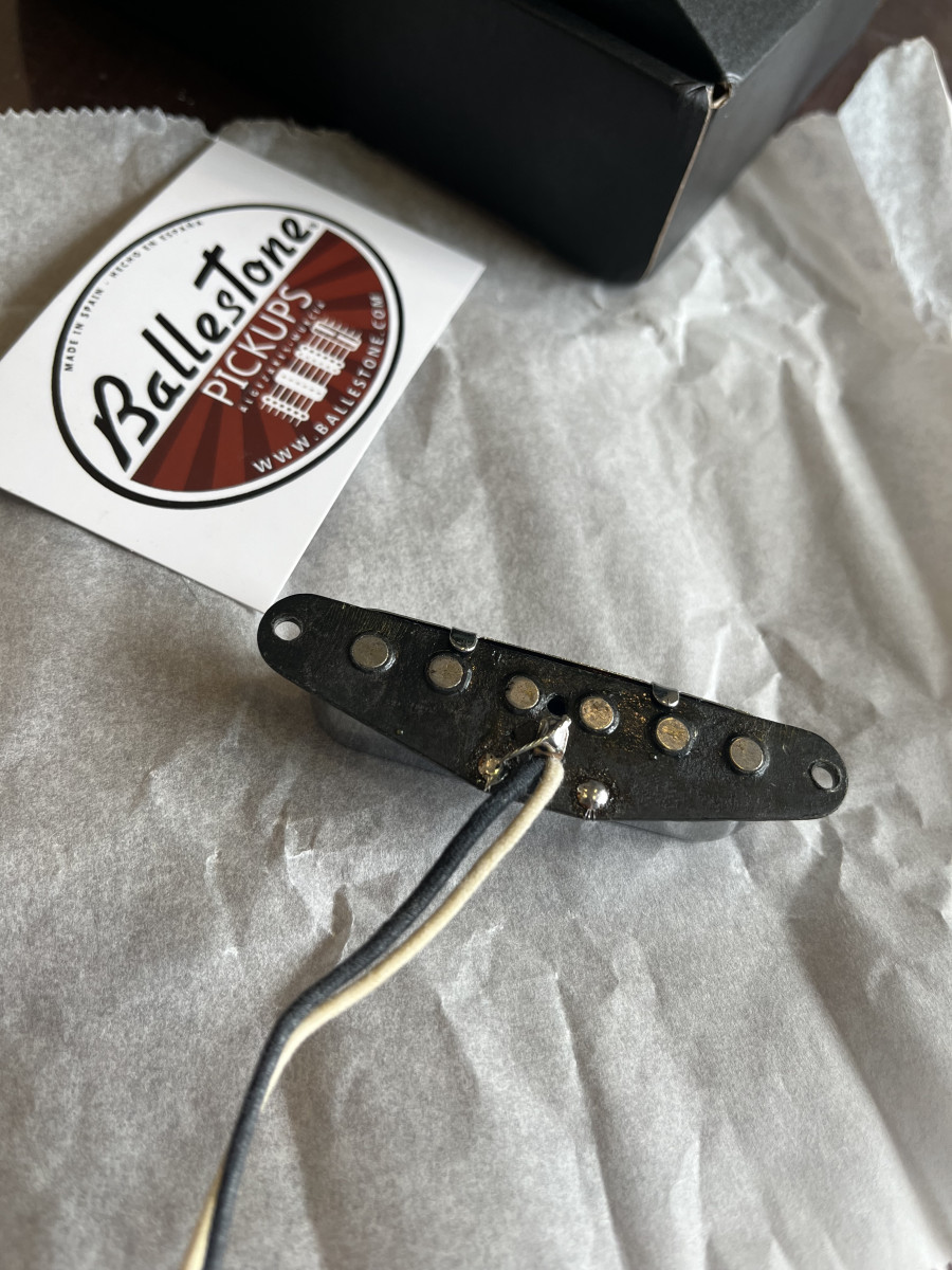 Inicialmente pensaba que no era original (la otra pastilla que vino con la guitarra no lo era) y el resto de piezas vintage se las quedó un colega así que se ha estado en una caja hasta que aproveché otro proyecto con Ballestone para mandar la pastilla "porsiaca" descubriendo que en efecto era del 68, se restauró con componentes vintage-spec usando una máquina ME-301 como las que usaba Fender en su día y poteada en gomalaca sintética como se hacía por aquel entonces, de manera que está a prueba de bombas. En mi multímetro mide 7.22kOhm.