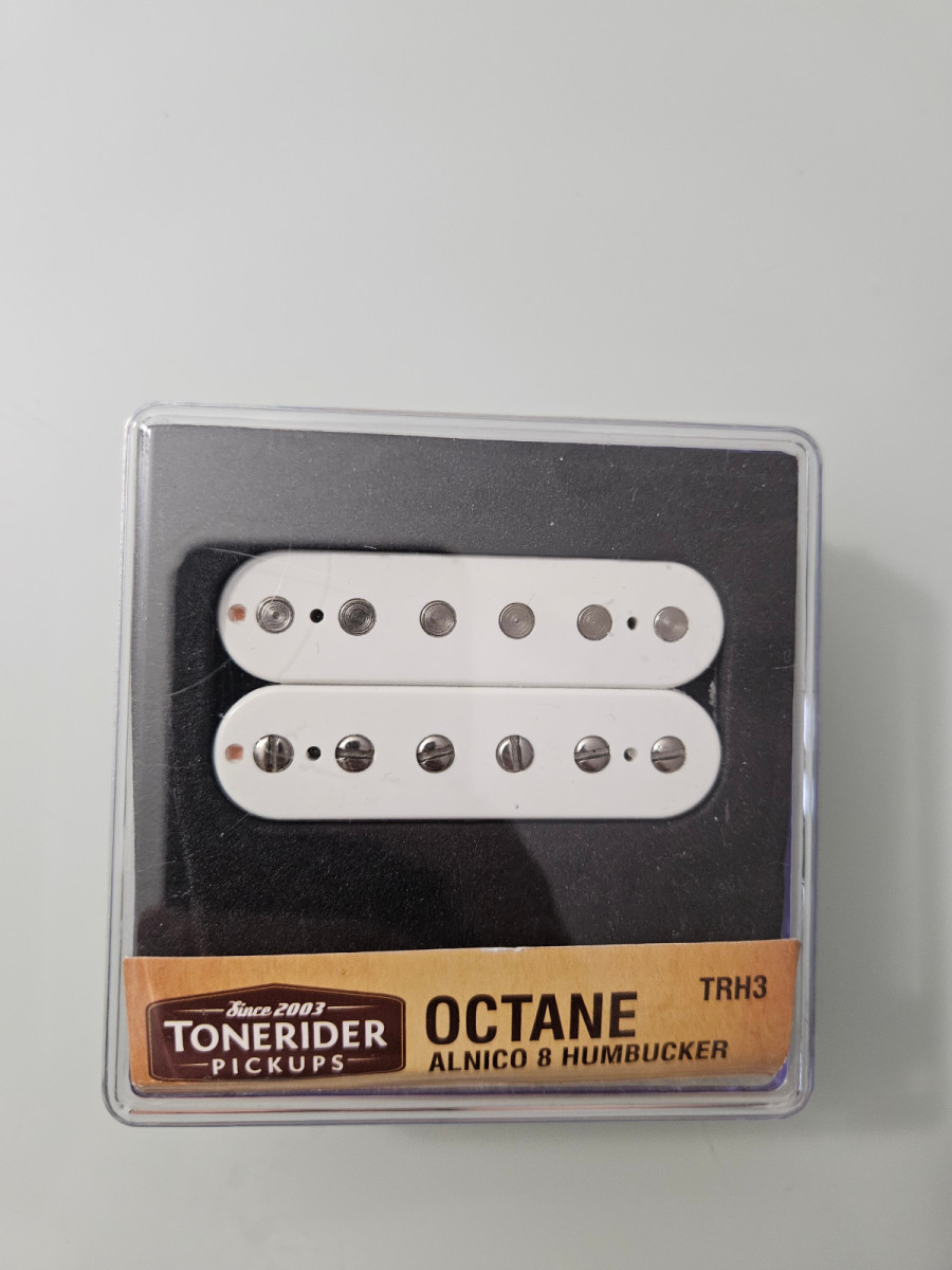Pastilla Tonerider Octane TRH3, humbucker Alnico 8, en color blanco. Incluye dos muelles. Estaba montada en una strato mexicana que he vendido. En perfecto estado. Conserva la longitud completa del cable.