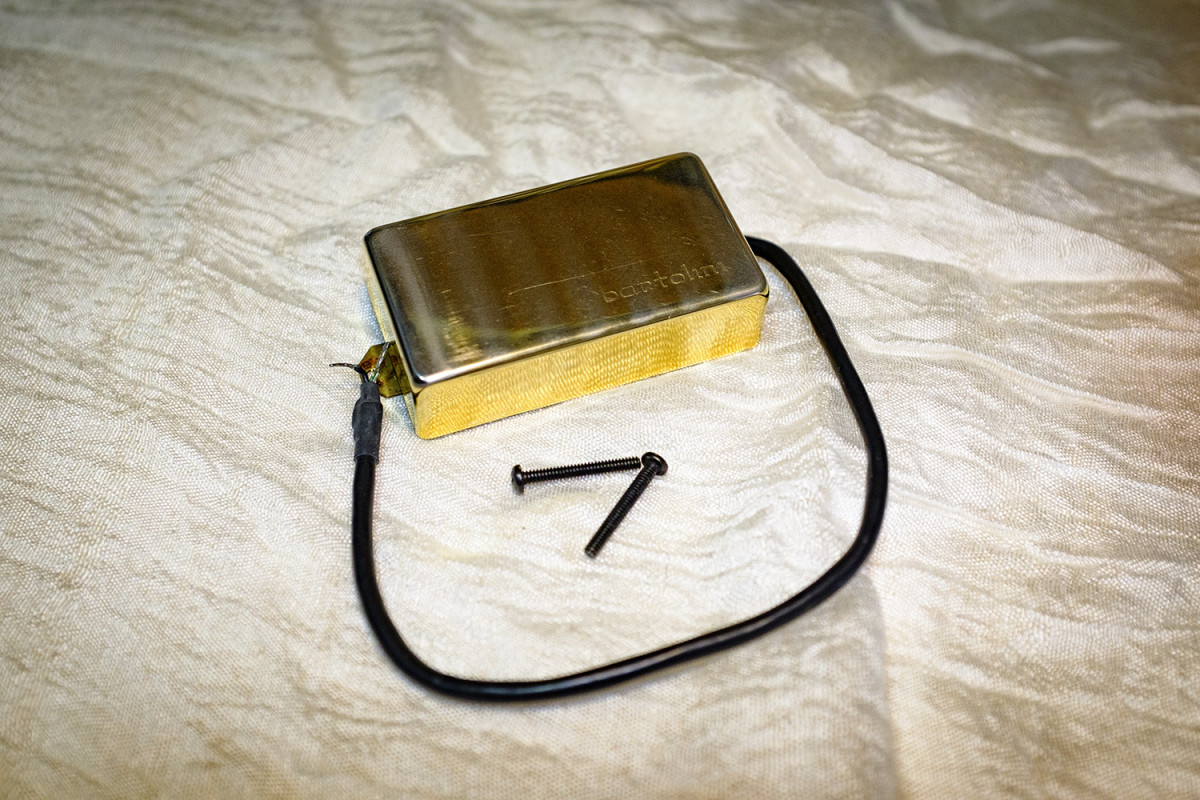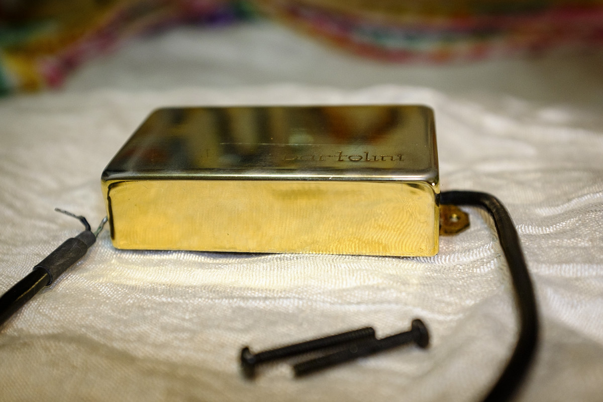 La dorada es de la época en que las hacían los creadores de la marca, Bill y Pat Bartolini, que se jubilaron en 2010. Tiene un desgaste natural del dorado, sin corrosión. El cable tiene 26 centímetros de largo, suficiente para cualquier posición, mástil o puente.
