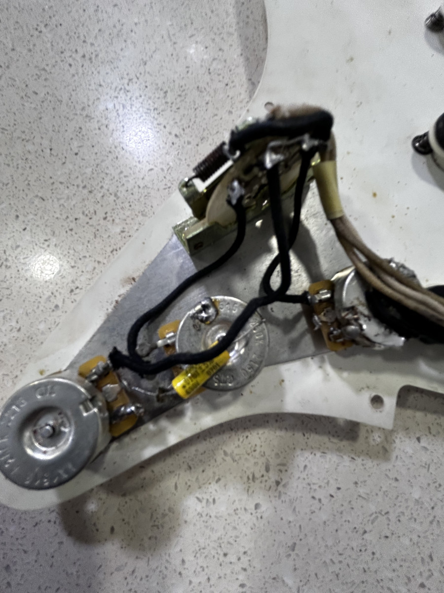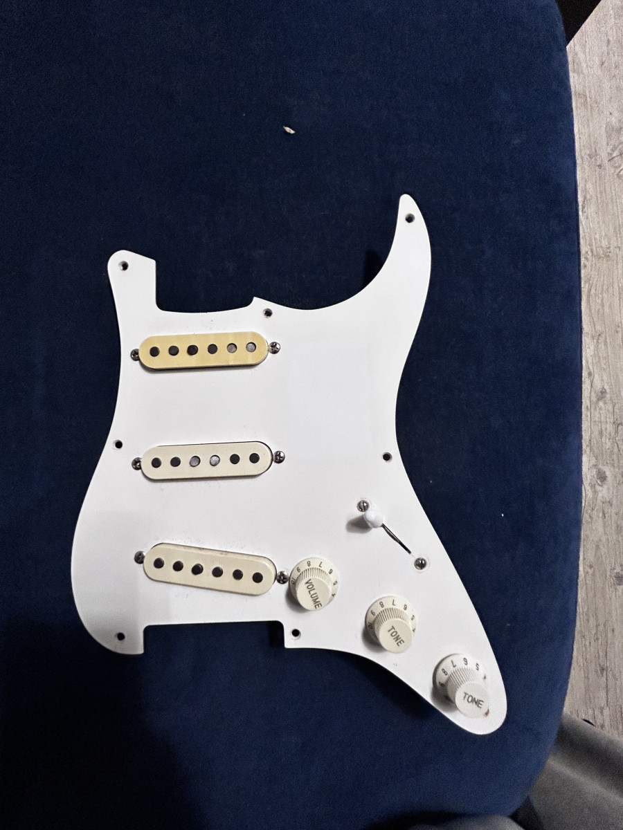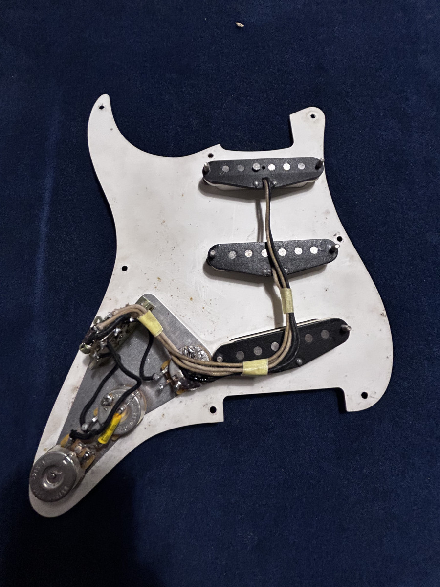 Buenas Gente !! Saco este golpeador completo de una Fullerton AVRI 57 de 1986 pastillas Black Bottom con el hito este granate plain enamel, lo que electrónica tiene algunas partes más actuales potenciometros cts 250 y el capacitador Mallory .