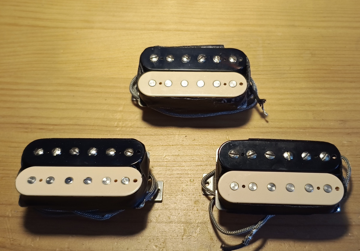 Se trata de las Gibson Burstbuckers 1, 2 y 3. Estuve experimentando con ellas en una guitarra que vendí, así que las tengo de pisapapeles.