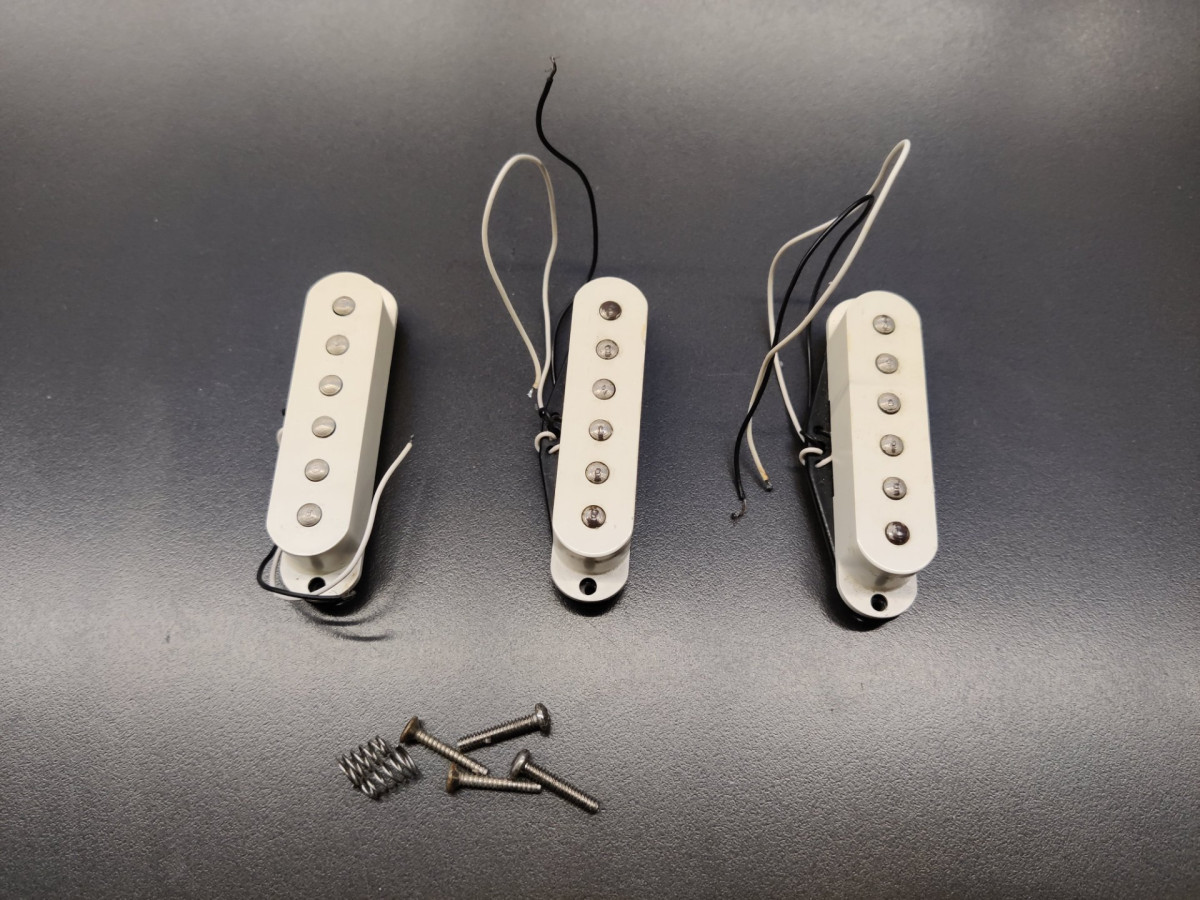 Set de tres pastillas cerámicas para guitarra tipo Stratocaster procedentes de una Fenix Stratocaster de los 90, uno de los fabricantes de las Squier coreanas de la época.