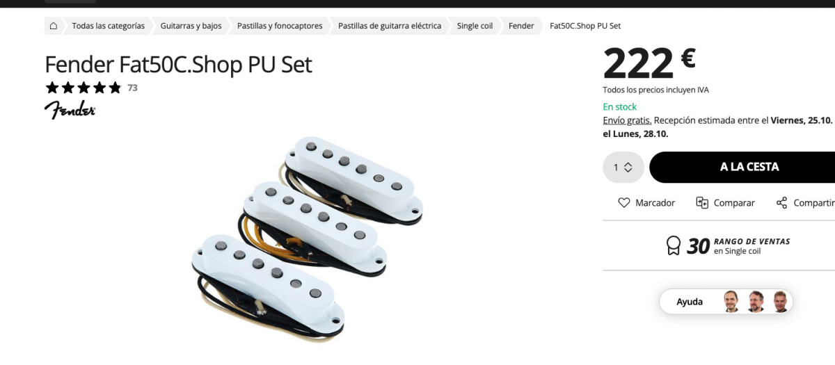 Este anuncio "Pastillas Fender Fat50 Custom Shop" está clasificado en la categoría Accesorios de guitarra.