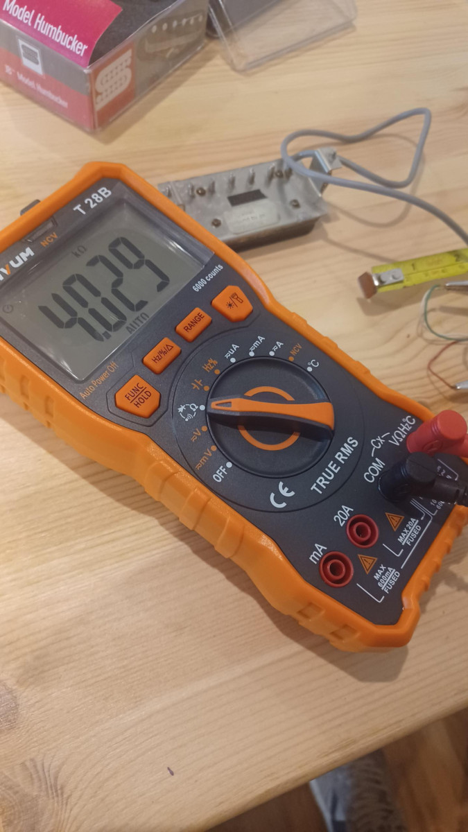 La BB3 dio una lectura en el multimetro de 8.45 en hambucker y 4,12 en single.