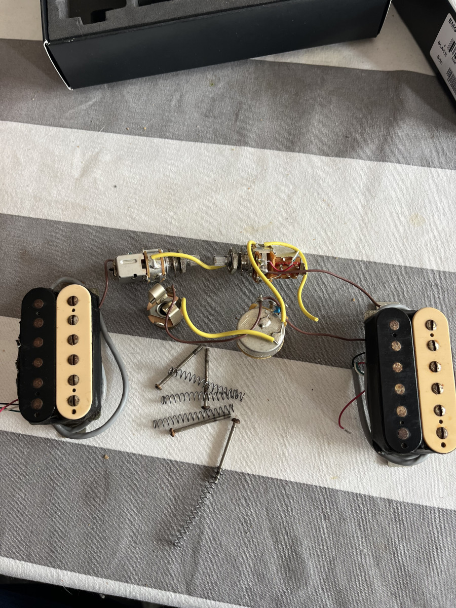 Procedentes de mi Gibson Flying V Ebony de 2016. Tiene las marcas de uso de una guitarra con 9 años. Perfecto funcionamiento. Incluido el cableado, tornillos, muelles, potes con push-pull, input jack.
