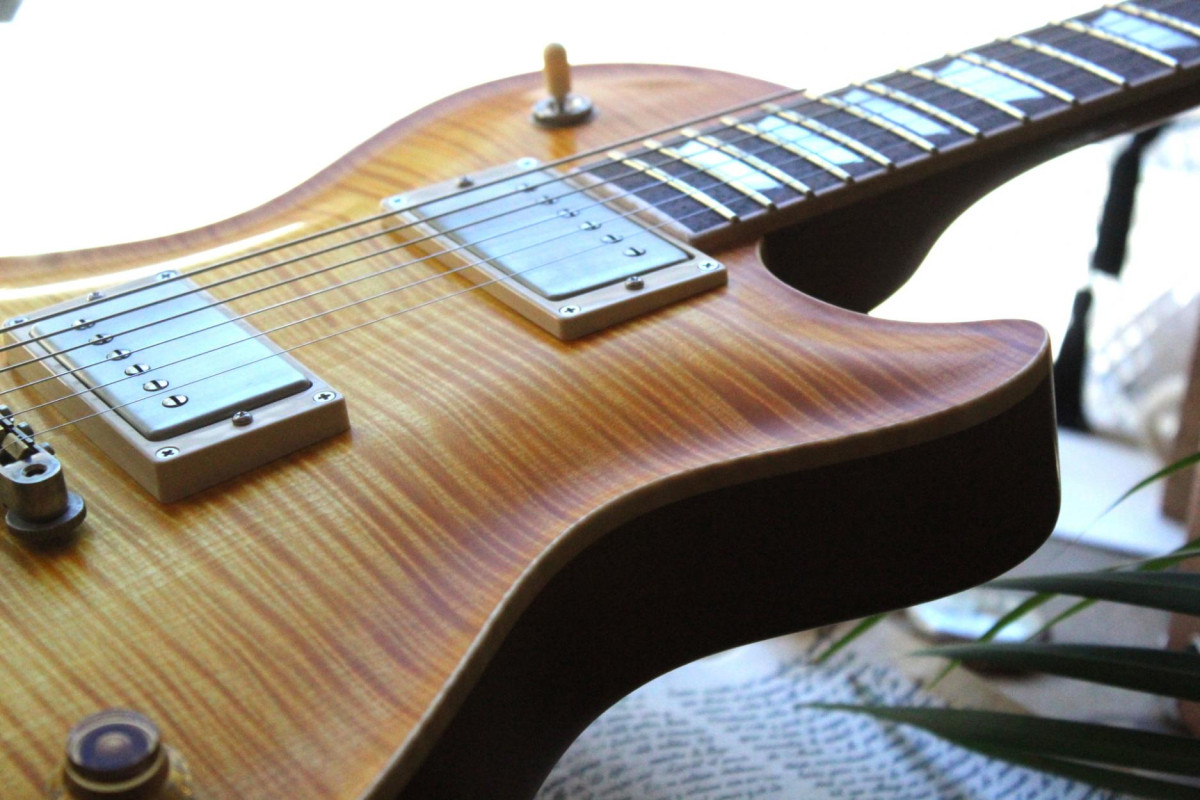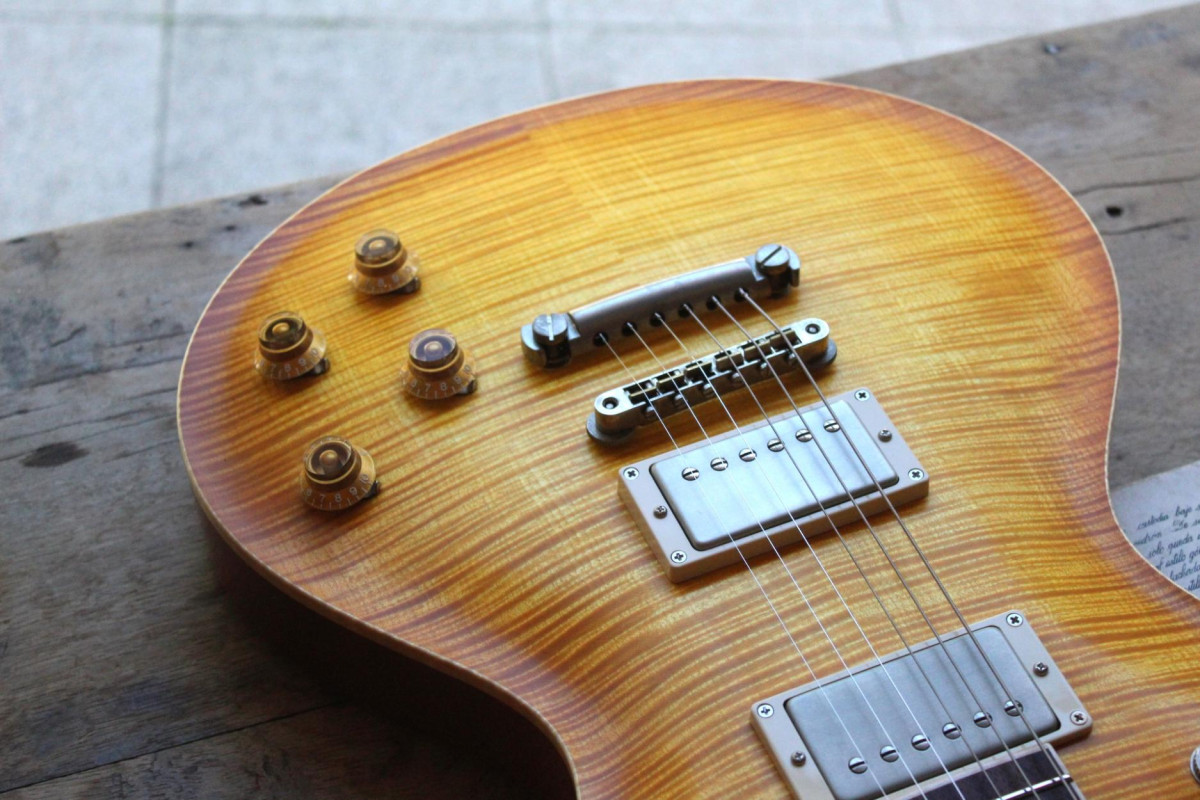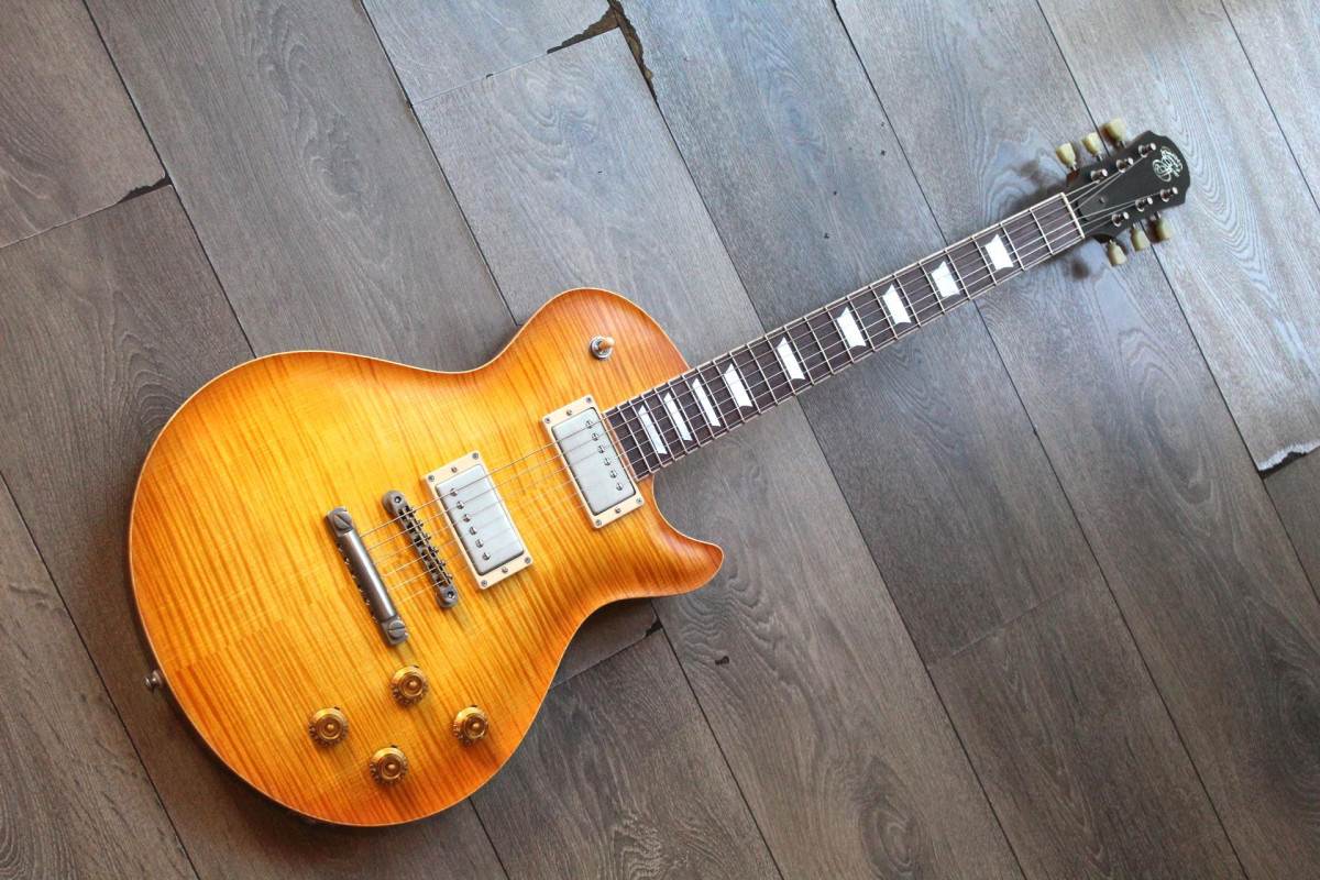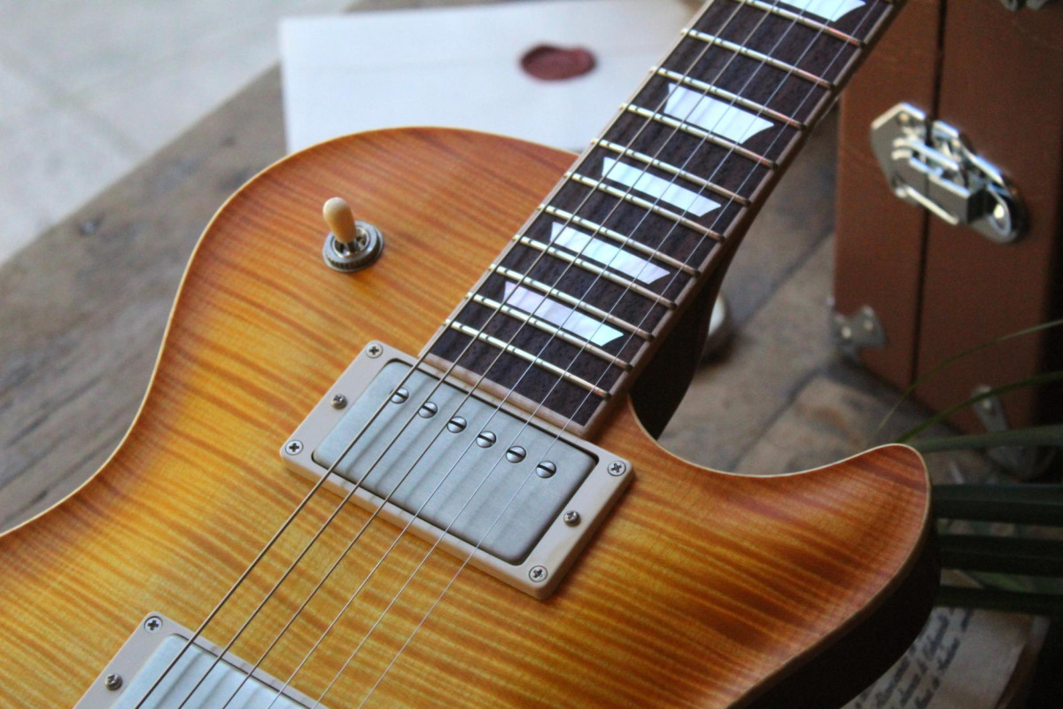 Vendo Patrick Eggle Macon Carved Top en acabado Iced Tea Burst.