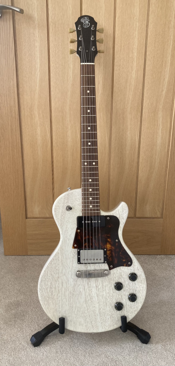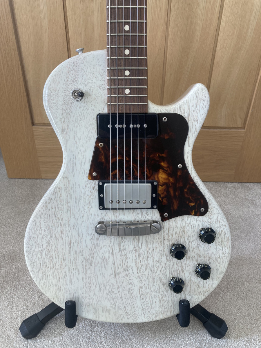 Lleva una pastilla Humbucker en el puente (conmutable a single coil) y una P90 en el mástil.