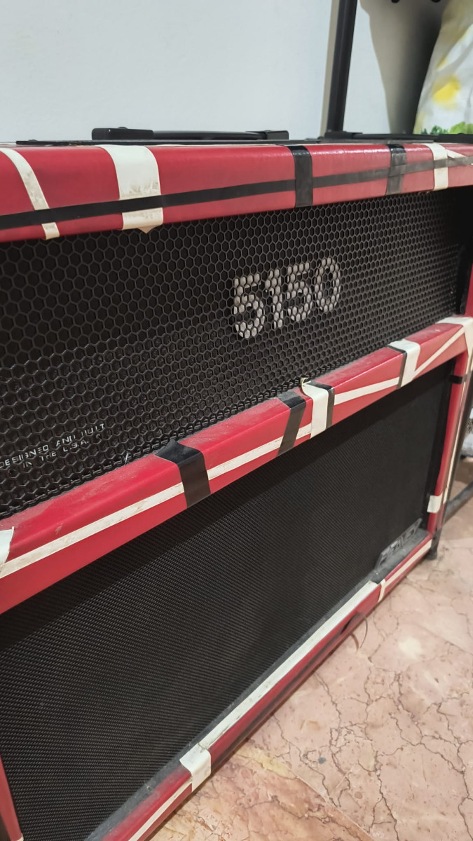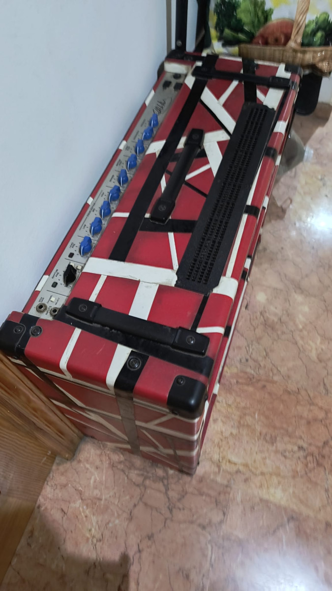Comprado a finales de los 90 en tienda de Valencia. el combo originalmente negro tiene dos canales con cuatro modos en total. incluye el pedal. el vinilo se lo llevé a un fabricante de amplificadores que había en una población cercana a Valencia y que ahora está en Londres , emulando las rayas de todo el equipo de van Halen. es un amplificador brutal , extraordinario que al cero ya suena y solo se ha usado en casa, no ha salido para nada y tocado a muy poco volumen. para mí , una pieza de colección.