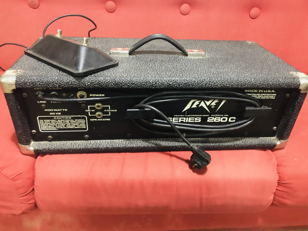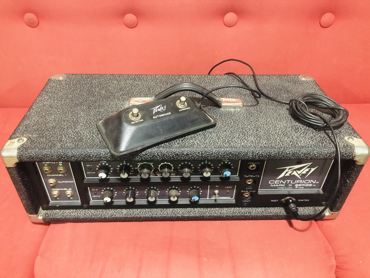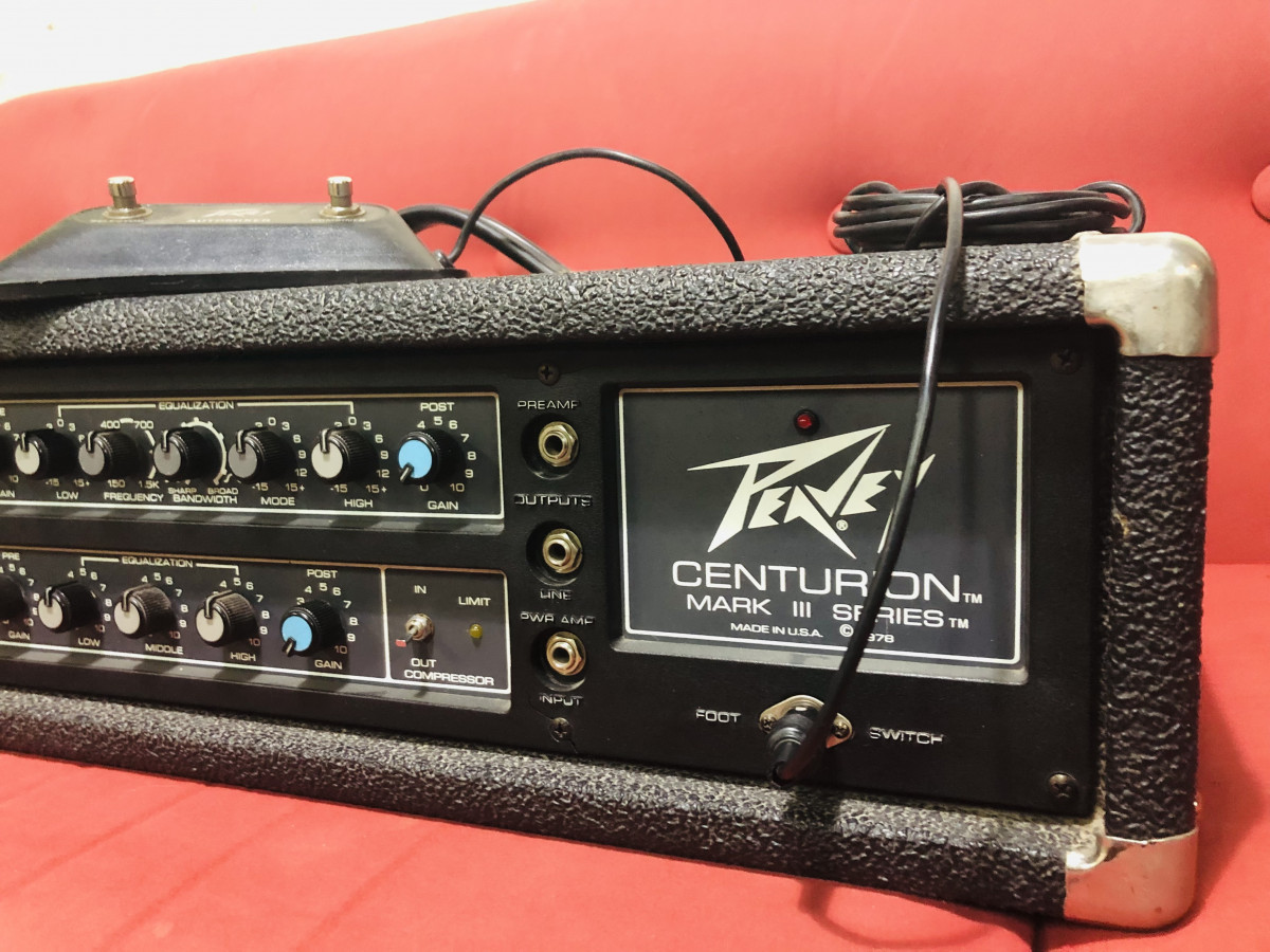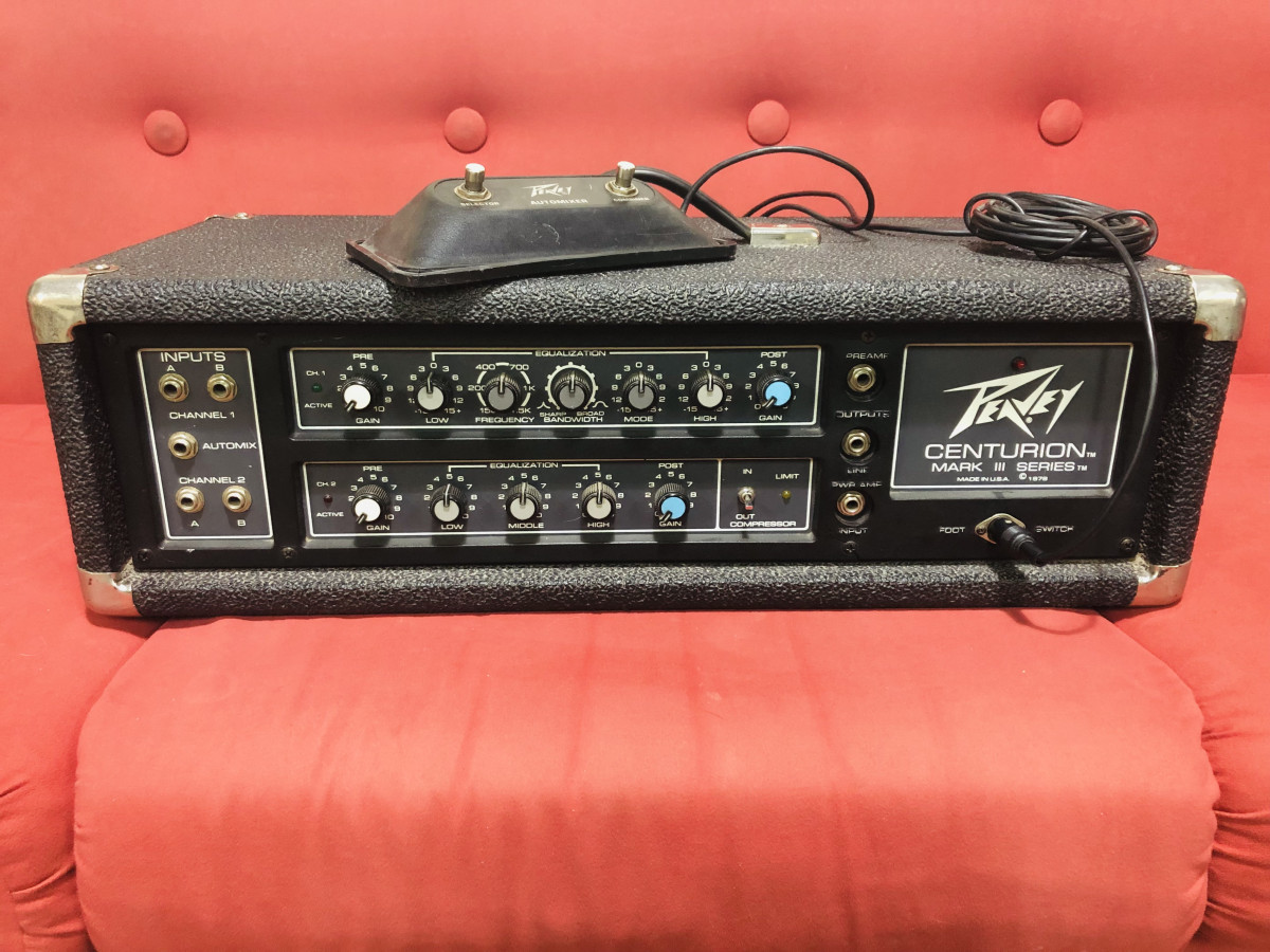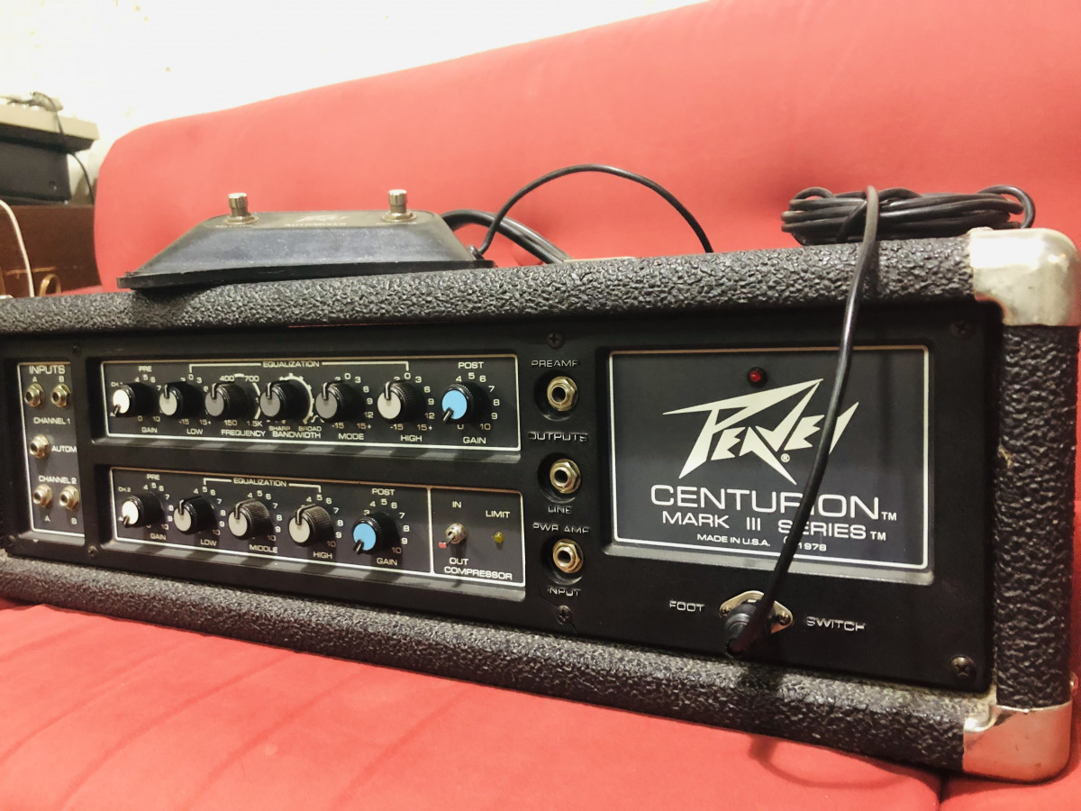 Amplificador cabezal Peavey Centurion de 1978. Made in USA. Suena muy bien tanto con guitarra como con bajo. Con su pedal original DIN de 6 pines Peavey Automixer incluido, para seleccionar entre sus 2 canales o combinarlos. Funcionando todo perfecto y muy bien conservado. Muchísimo volumen y sustain. NO CAMBIOS