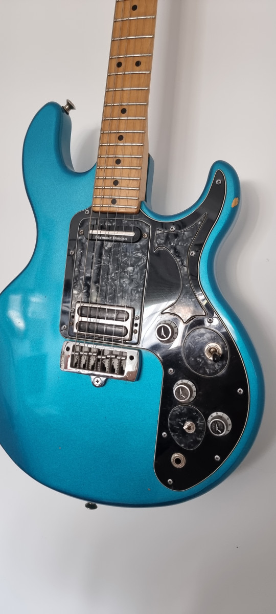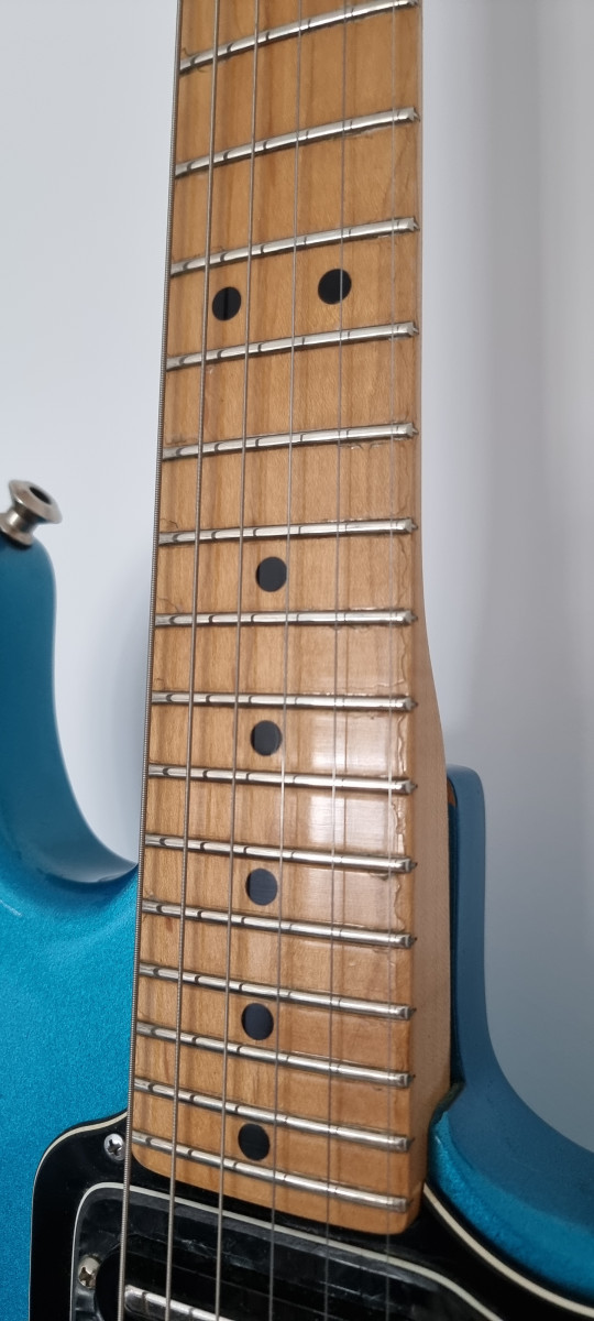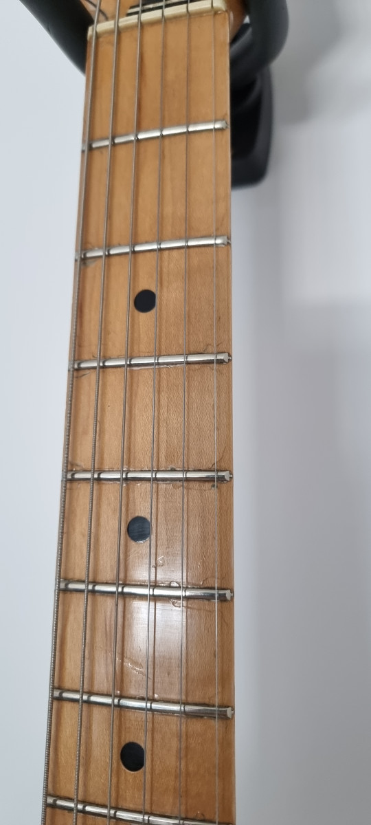 Mástil de arce con un tacto increíble y cuerpo que por peso pienso que es fresno, estas guitarras se fabricaban de aliso o fresno indistintamente.