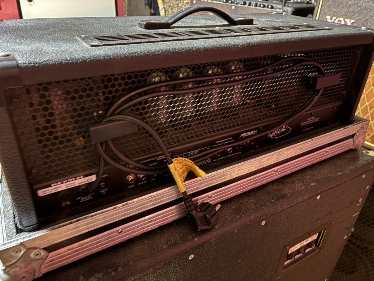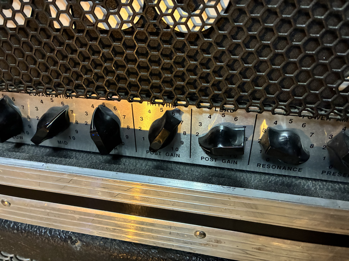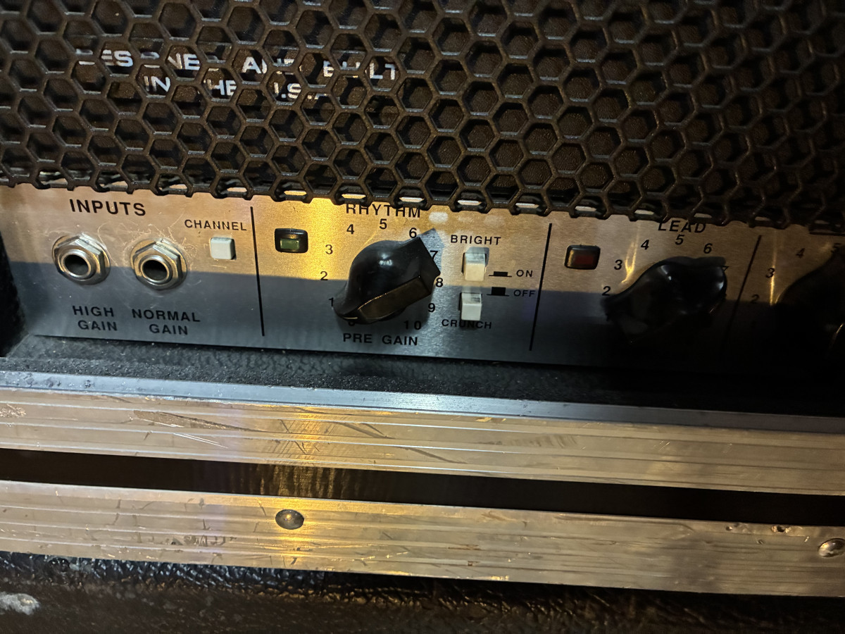 Está en un estado genial. Obviamente tiene señales estéticas de uso, pero está revisado de válvulas y desde entonces se ha tocado solo un par de veces. En cuanto a sonido y funcionalidad, está perfecto. Todos los potes, luces y demás, están igual perfectos. Siempre ha estado protegido el cabezal con su caja dura de metal. Ha estado siempre en el local de ensayo, a salvo de humedades y de temperaturas extremas, en un sitio además que se utiliza varias veces a la semana.