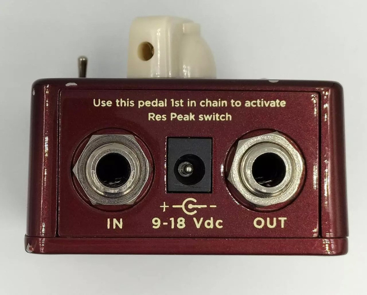 Características: True Bypass. Booster lineal graduable desde 0dB hasta +25dBs Pickup Resonance Switch: Convierte una pastilla de bobina simple en una humbucker “vintage” (posición 1) o una humbucker moderna agresiva (posición 2). La posición 0 no afecta al sonido. Se puede usar con alimentación DC a 9v o 18v, o pila.