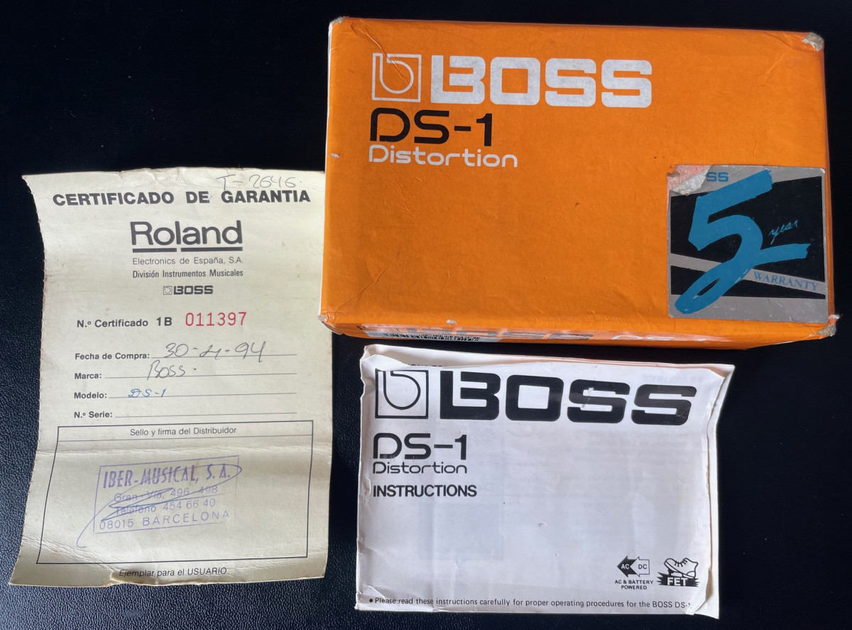 En venta pedal Boss DS-1 Distortion de 1992 (black label, n serie: GE58932, Made in Taiwan) con el chip Toshiba TA7136AP, que proporciona una distorsión más suave y balanceada que sus versiones posteriores. Funciona perfectamente y tiene algunas marcas de uso externas (razón de su precio). Manual y caja originales. Gastos de envío no incluidos (aprox. 10 €).