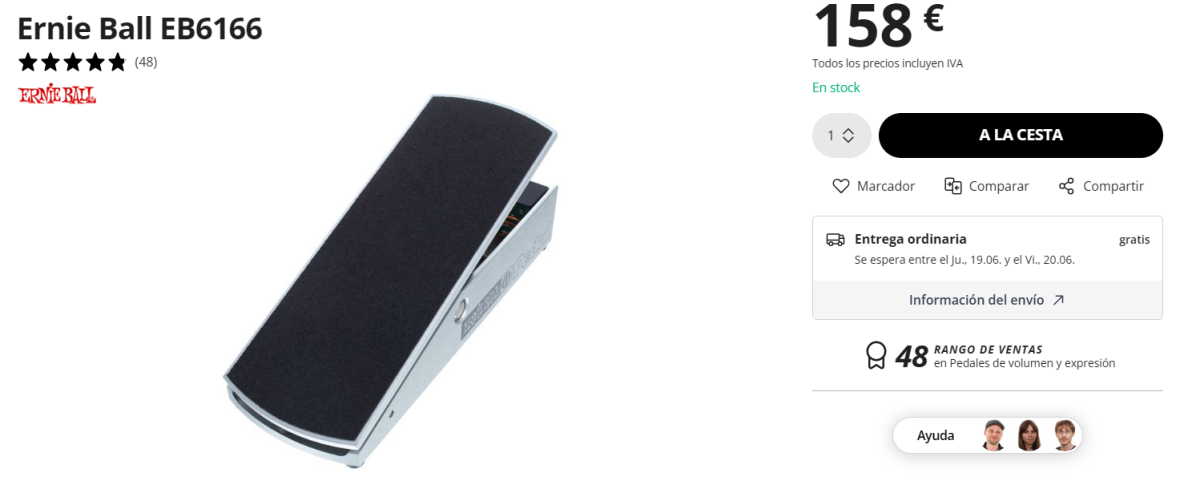 Este anuncio "Pedal Ernie Ball 6166 expresión/volumen" está clasificado en la categoría Pedales y efectos.
