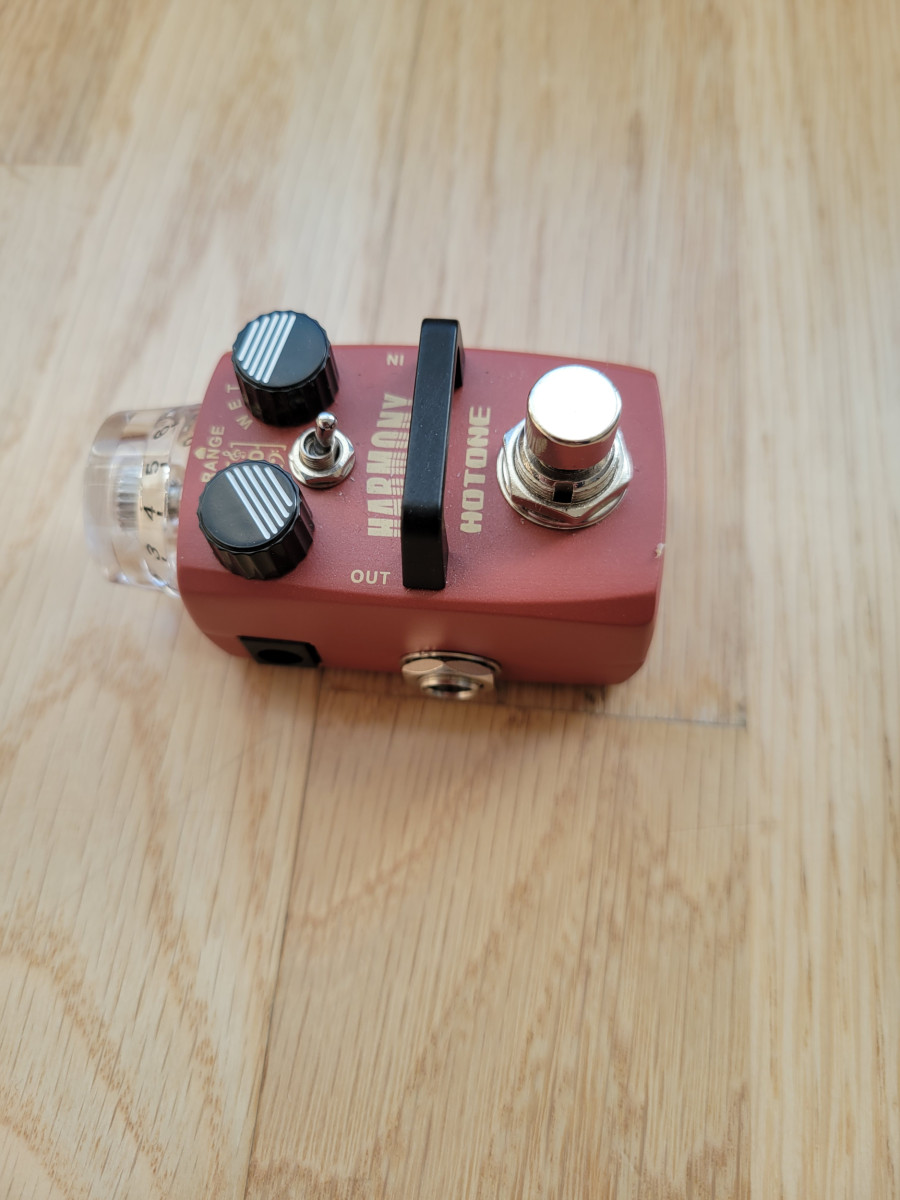 Vendo pedal Hotone Harmony. Puedes variar hasta 12 semitonos por encima o por debajo de la nota original e incluye una variación de 24 semitonos. Tiene opción detune.