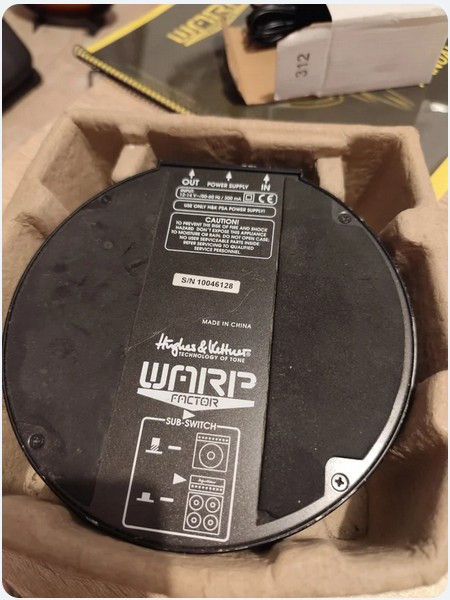 Pedal de distorsión Warp de Hughes & Kettner en gran estado y perfecto funcionamiento, incluye manual y fuente de alimentación. Descatalogado. Un gran pedal de distorsión. No cambios.