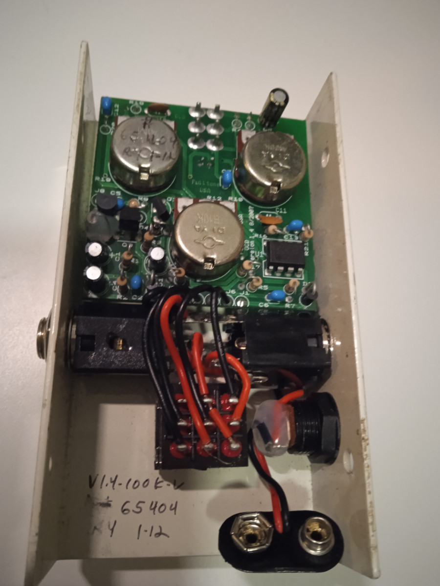 Pedal Overdrive/distorsión. Es el que más he usado, en el local en casa y en todas partes. Le faltan los tornillos laterales pero es perfectamente funcional. Tiene menos volumen y graves que el 1.7 y el 2, pero se oye mejor en la mezcla.