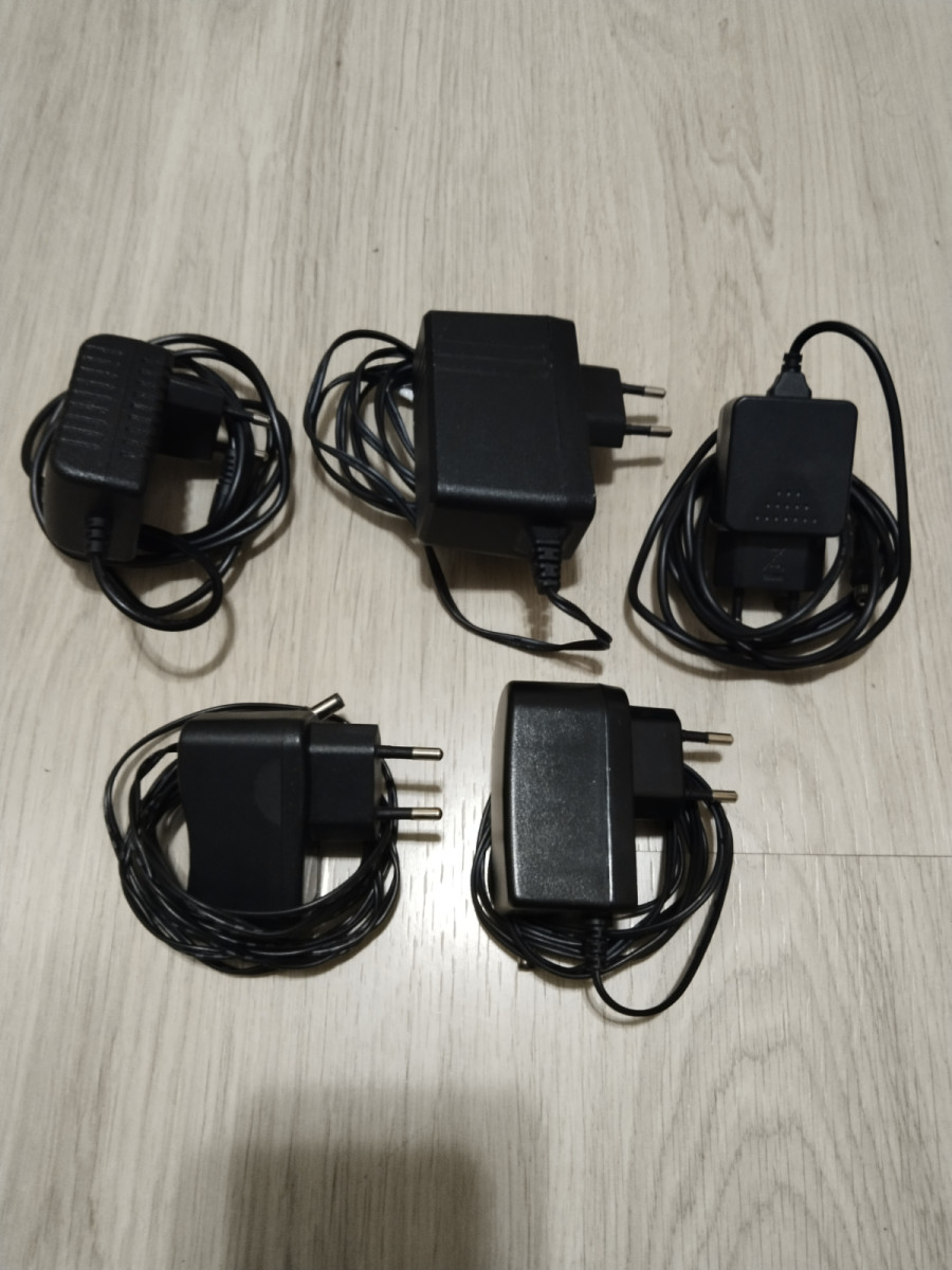 - 5 adaptadores de corriente. 3 de 12V y 2 de 9V