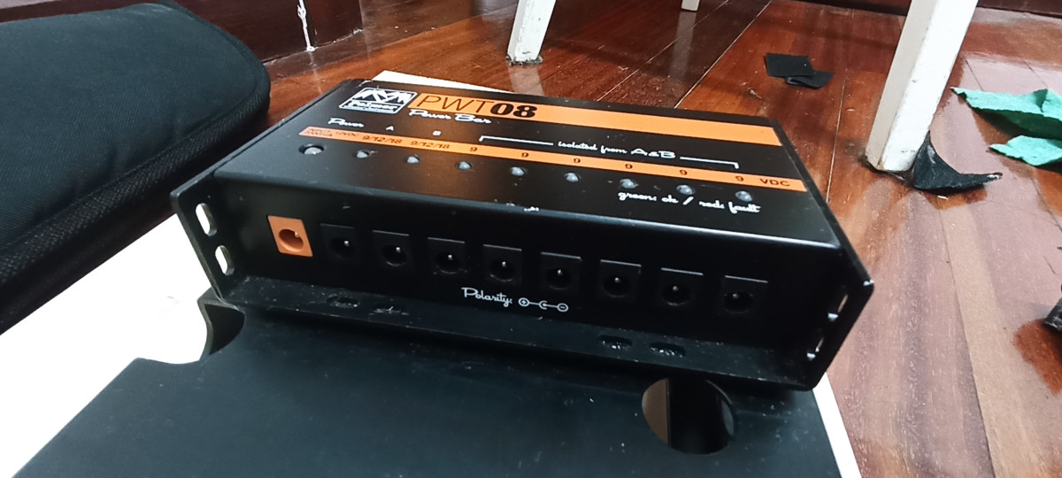 Además, incluyo el alimentador Palmer Power Bank PWT 08 (nuevo cuesta 109 €) para alimentar todos los pedales en cadena.