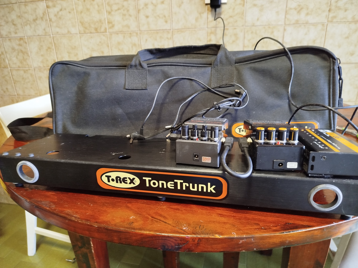 Pedalboard sólido para 5 pedales individuales del tamaño estándar. La marca T- Rex, de lejos es una de las más sólidas y confiables en el mercado.