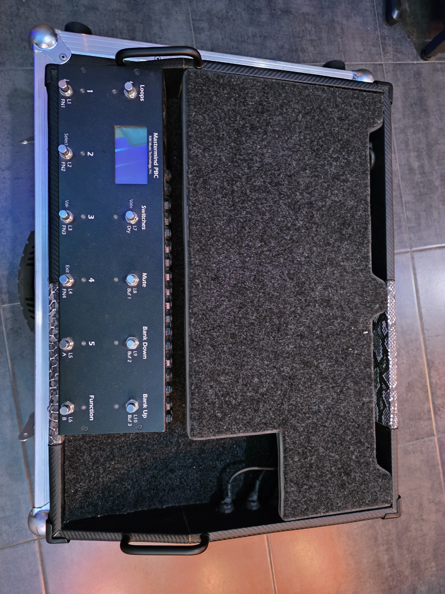 Hola, vendo esta solución de pedalera profesional hecha a medida por Rock in a Box (España), lista para ser cargada con tus pedales y controlada con tu switcher MIDI (la PBC de RJM, que vendo por separado).