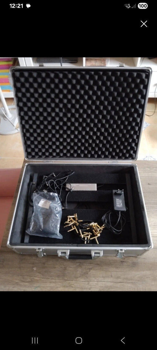 Pedalera harley benton spaceship 40 y fuente de alimentacion iso-2 pro, caja dura con cierres, 8 salidas aisladas y dos de ellas conmutables a 12 o 18 v, nunca me ha dado ningun problema y he conseguido meter hasta 10 pedales de buen tamaño en ella, tiene marcas de uso pero de funcionalidad esta perfecta, tanto los cierres como la fuente de alimentacion, regalo patch cables cortos practicamente nuevos y cables de la fuente de alimentacion a los pedales, tambien un cable bueno de fuente de alimentacion a corriente y uno de repuesto, es cable gordo y fiable resistente a pisotones, salen en las fotos, tambien incluyo bastante velcro de las dos caras.