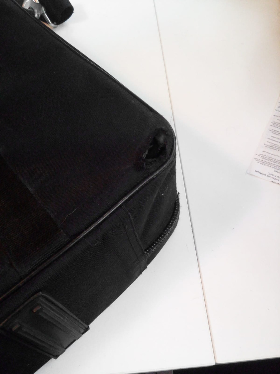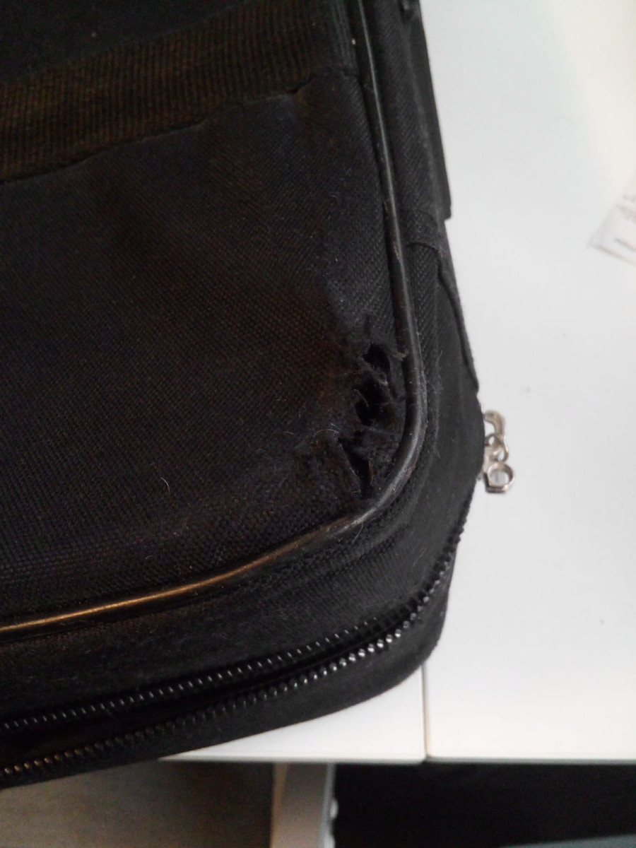 La funda tiene un par de desperfectos en las esquinas inferiores de la parte trasera, producidas por el roce con las patas de la pedalera.