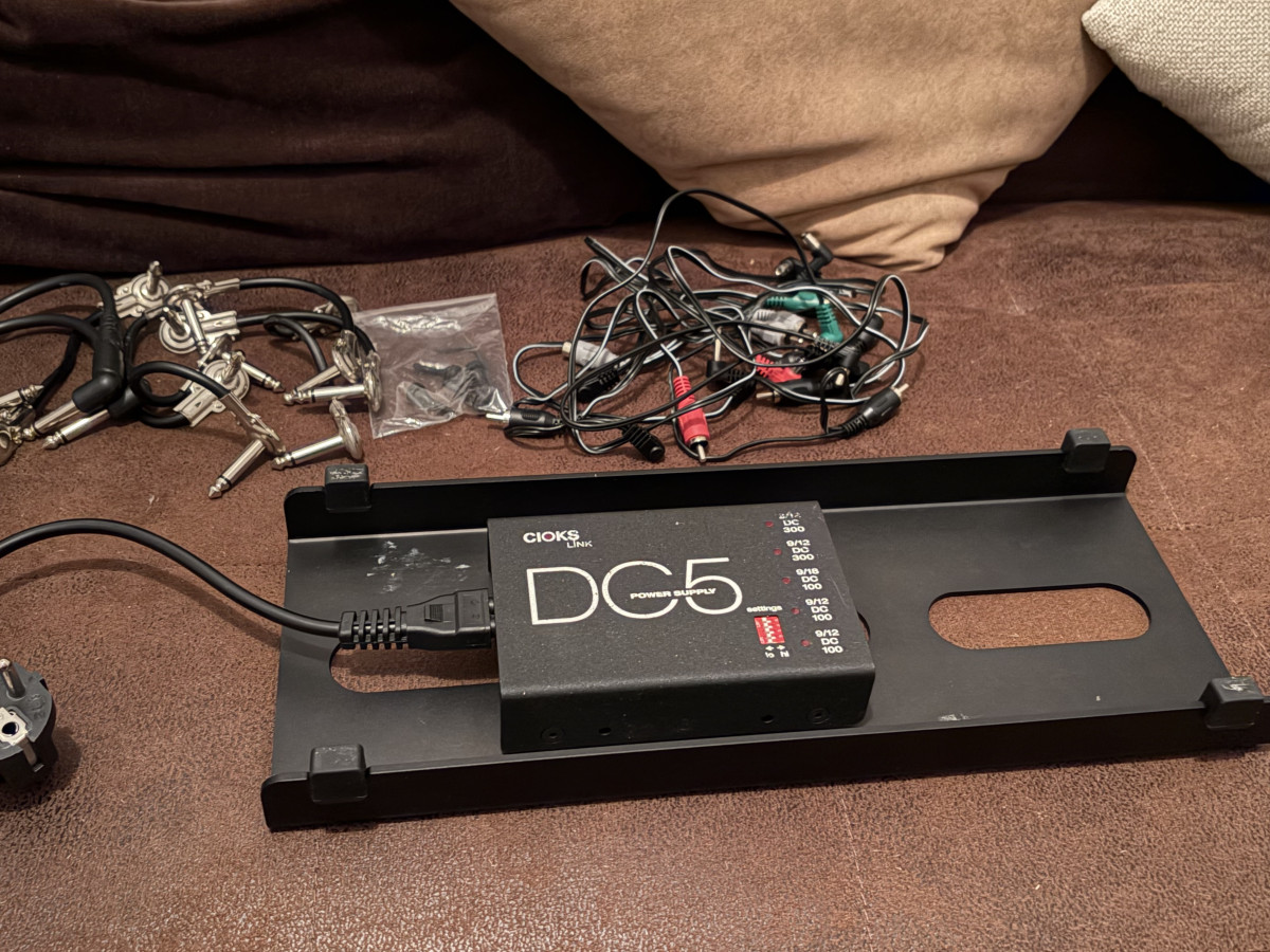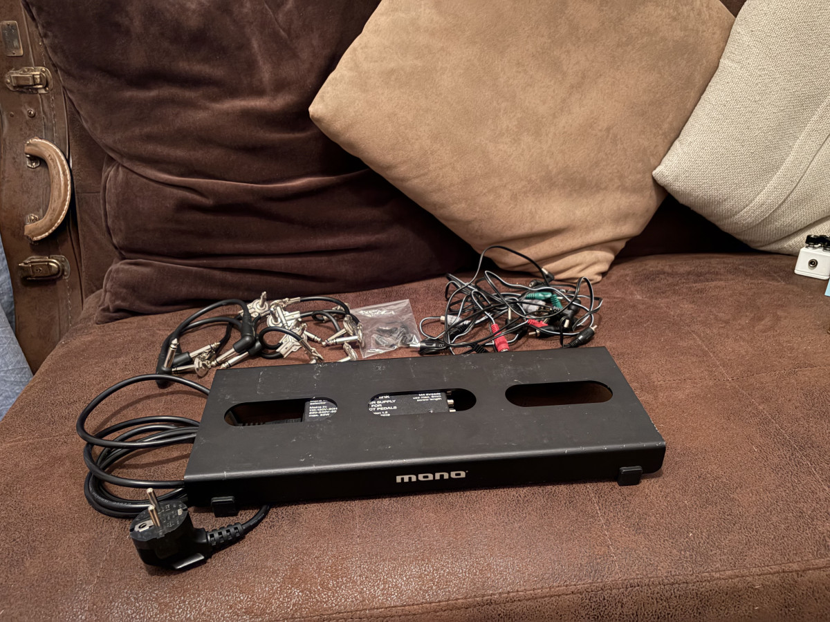 Por no tocar vendo esta pedalera pequeña MONO con algo de uso (y sucia por el adhesivo de los pedales) pero en perfectas condiciones (precio alrededor de 150€), además lleva incorporado la fuente de alimentación CIOKS DC5 con capacidad de sobra para varios pedales de diferente voltage (precio igualmente alrededor de 150€).