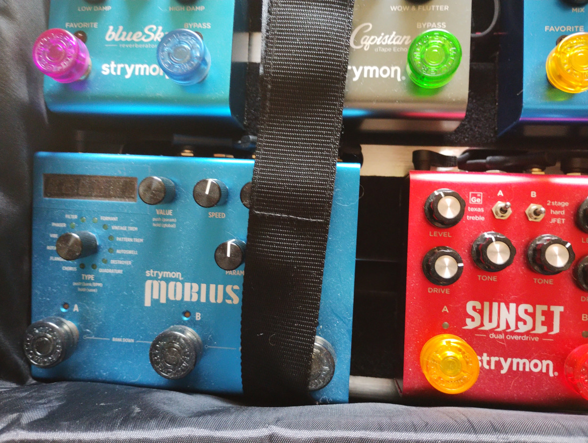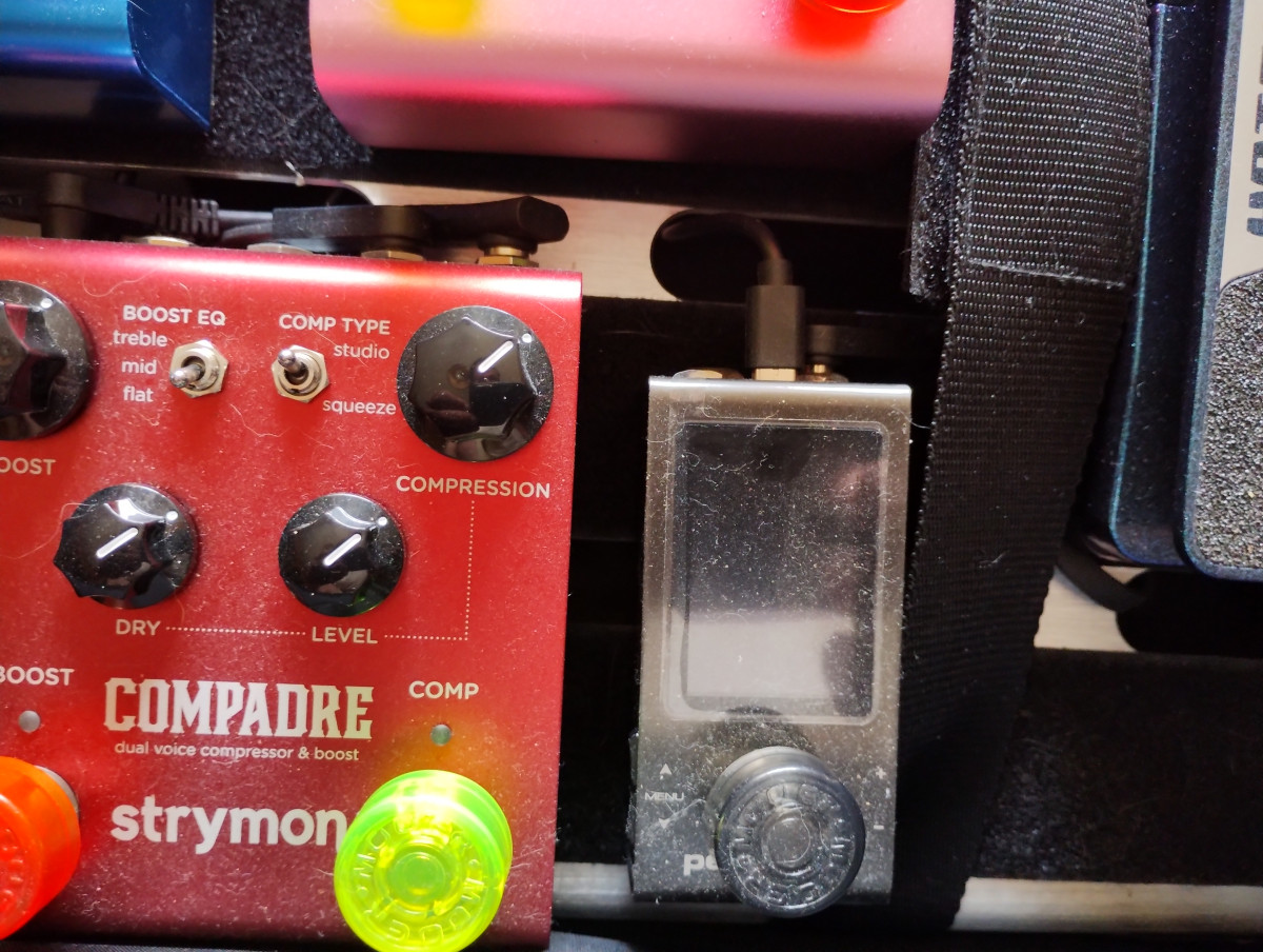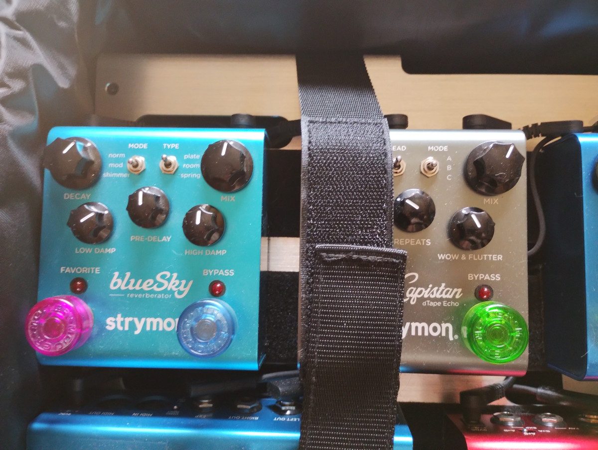 Pedalera montada con pedaltrain Fender y fuente de alimentación Fender