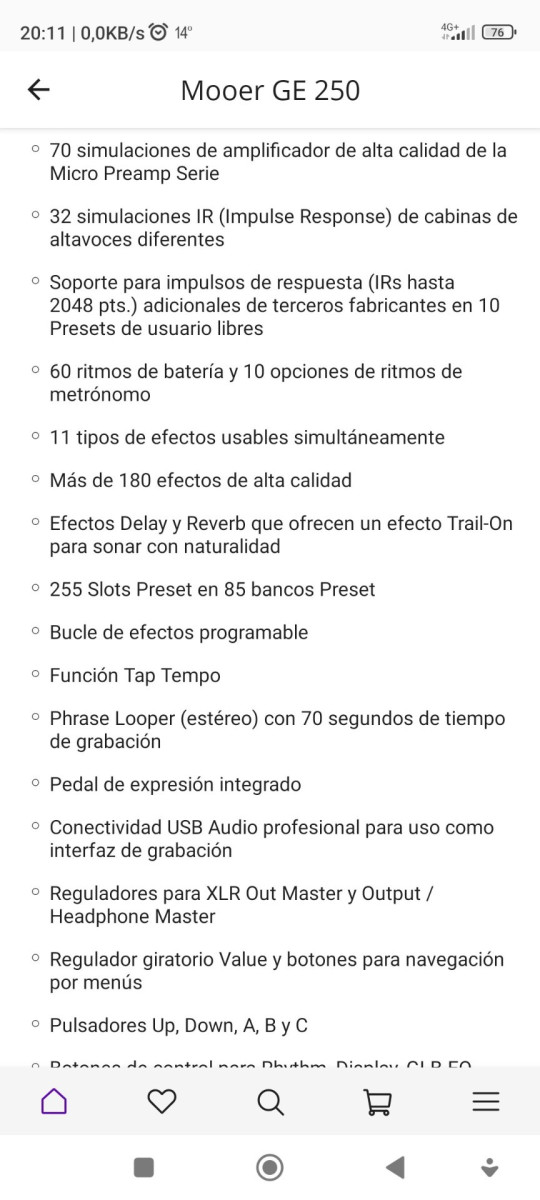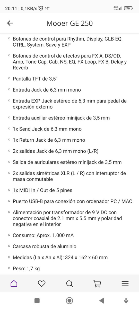 - Controles de amplificador, EQ, delay, reverb y ritmo.