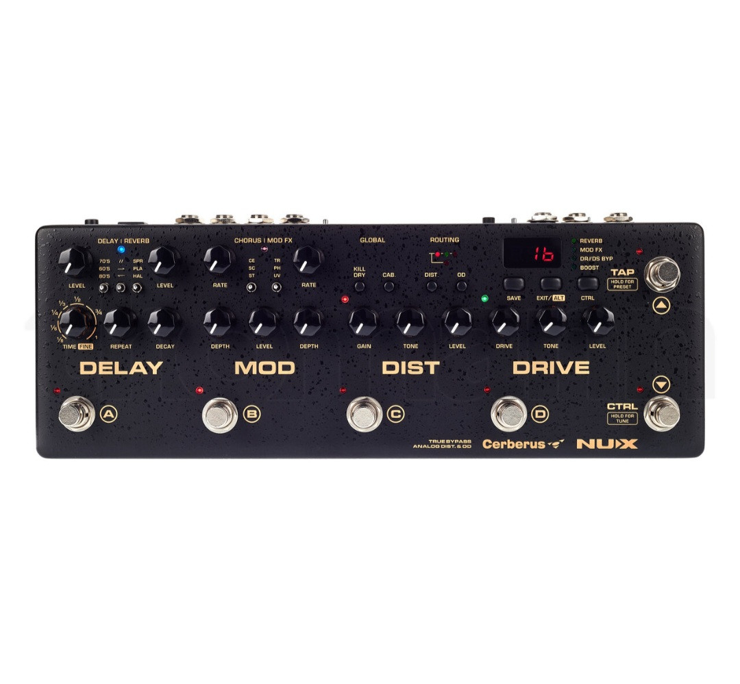 • 16 tipos de efectos diferentes en 4 grupos de efectos (delay/reverb, mod, distorsión, drive)