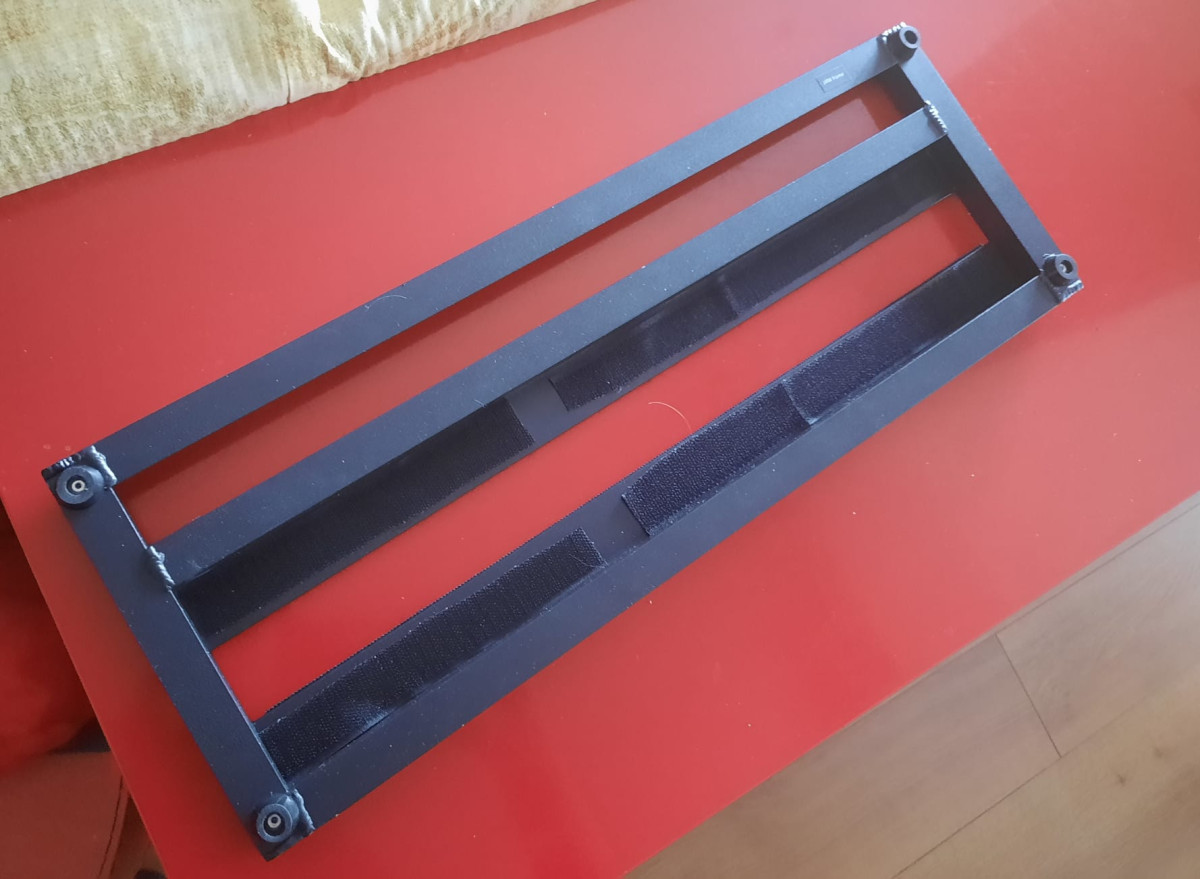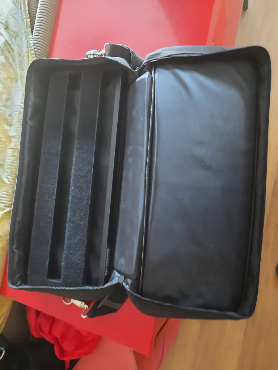 Pedalera Rockboard medidas 51,5x18,5 con bolsa de transporte. Tiene puesto el velcro para poner los pedales. Caben 7 de tipo boss ... o más si se ponen en horizontal y no en vertical.