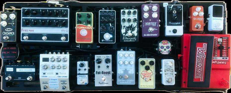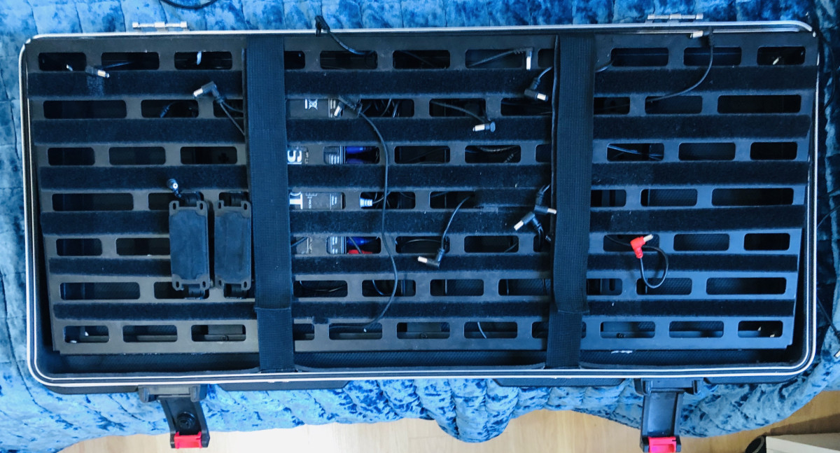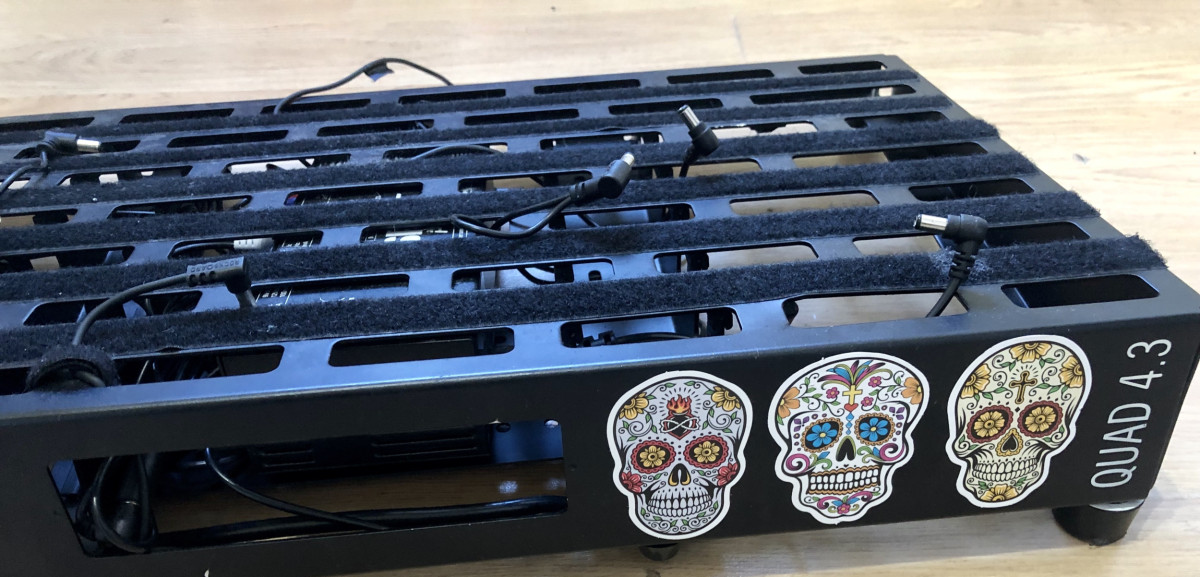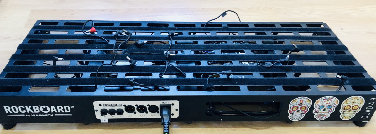 Pedalera Rockboard Quad 4.3 con maleta ultraligera de ABS.84cm X 20 cm. Usada solo en estudio y 3 bolos. Se vende junto con la fuente Truetone CS12, además de todos sus cables de alimentación y 6 cables Rockboard Daisy. La fuente es la más potente del mercado. 2 x 18VDC-100mA, 4 x 9/12VDC-100mA, 1 x 4-9VDC-100mA, 2 x 9VDC-250mA y 2 x 9VDC-500mA, 1 x 9VAC-800mA = total 2900mA.